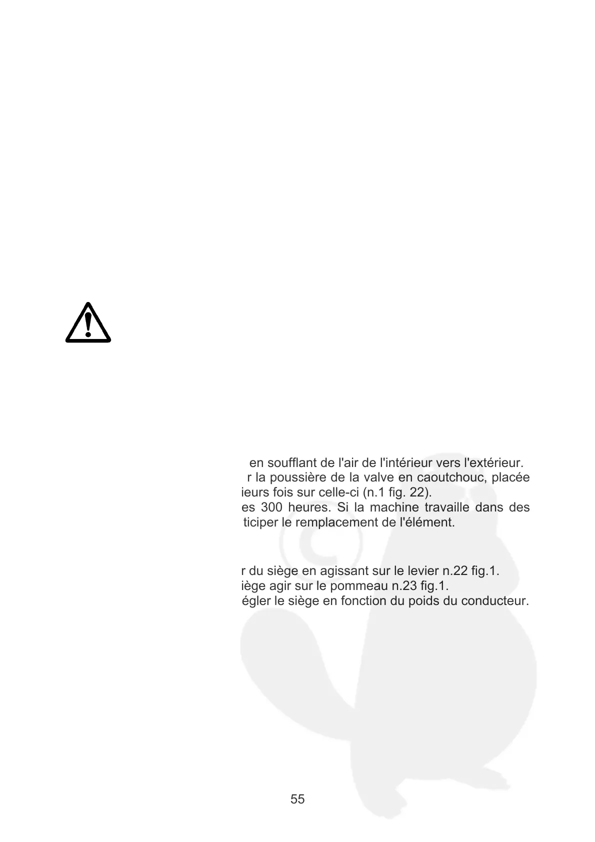 Si nécessaire, régler la hauteur du siège en agissant sur le levier n.22 fig.1.