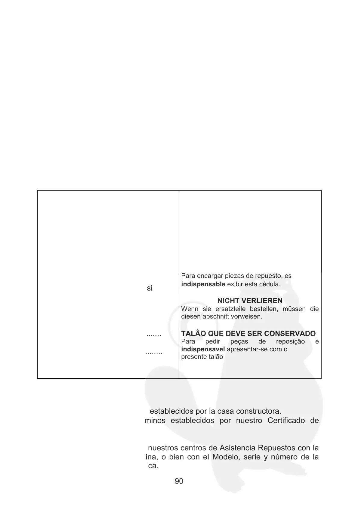 la calidad de la máquina y asegura el derecho a la GARANTIA sobre el
