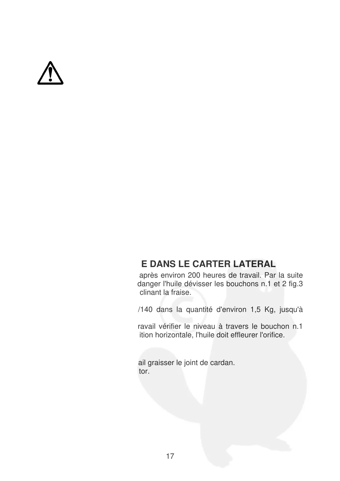 Toutes les 50-60 heures de travail vérifier le niveau à travers le bouchon n.1
