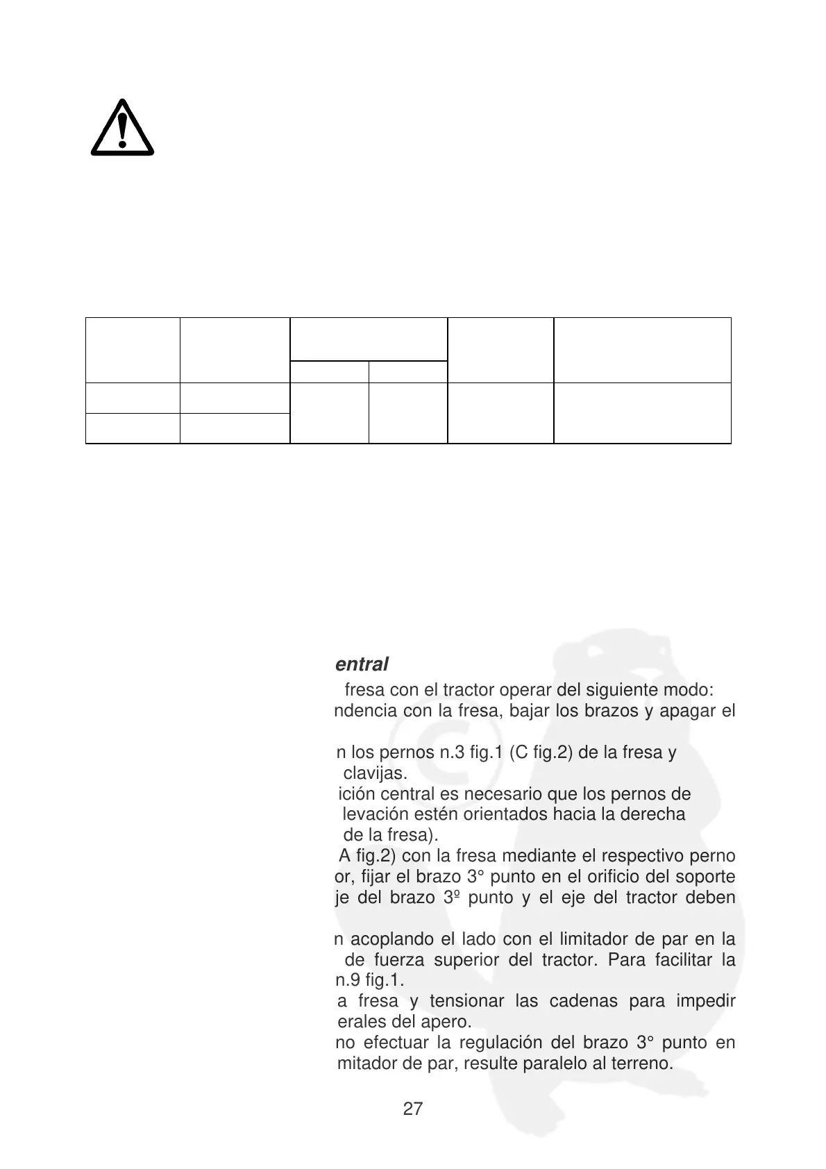 a) Parar el tractor en correspondencia con la fresa, bajar los brazos y apagar el