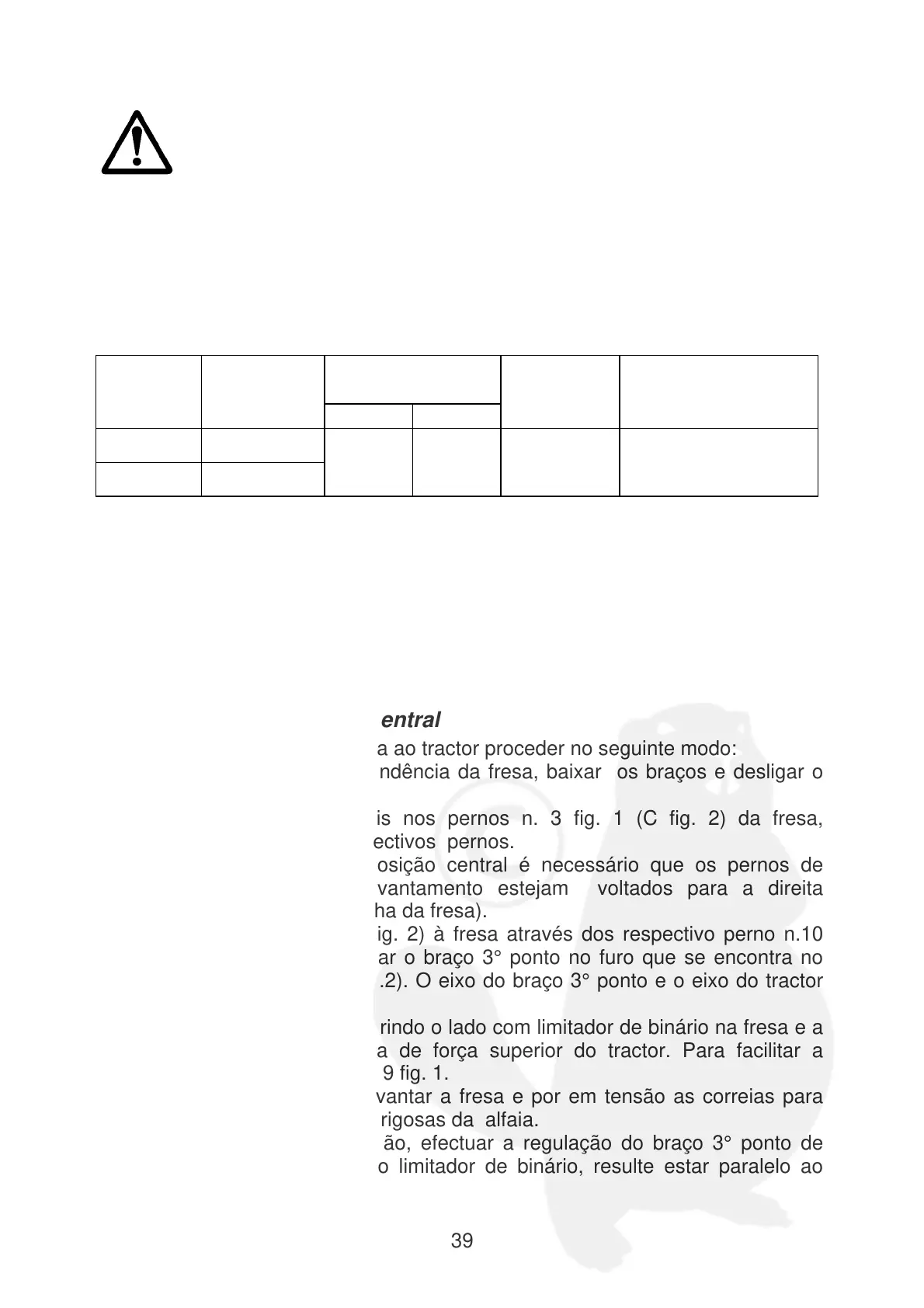 suporte do levantador (C fig.2). O eixo do braço 3° ponto e o eixo do tractor