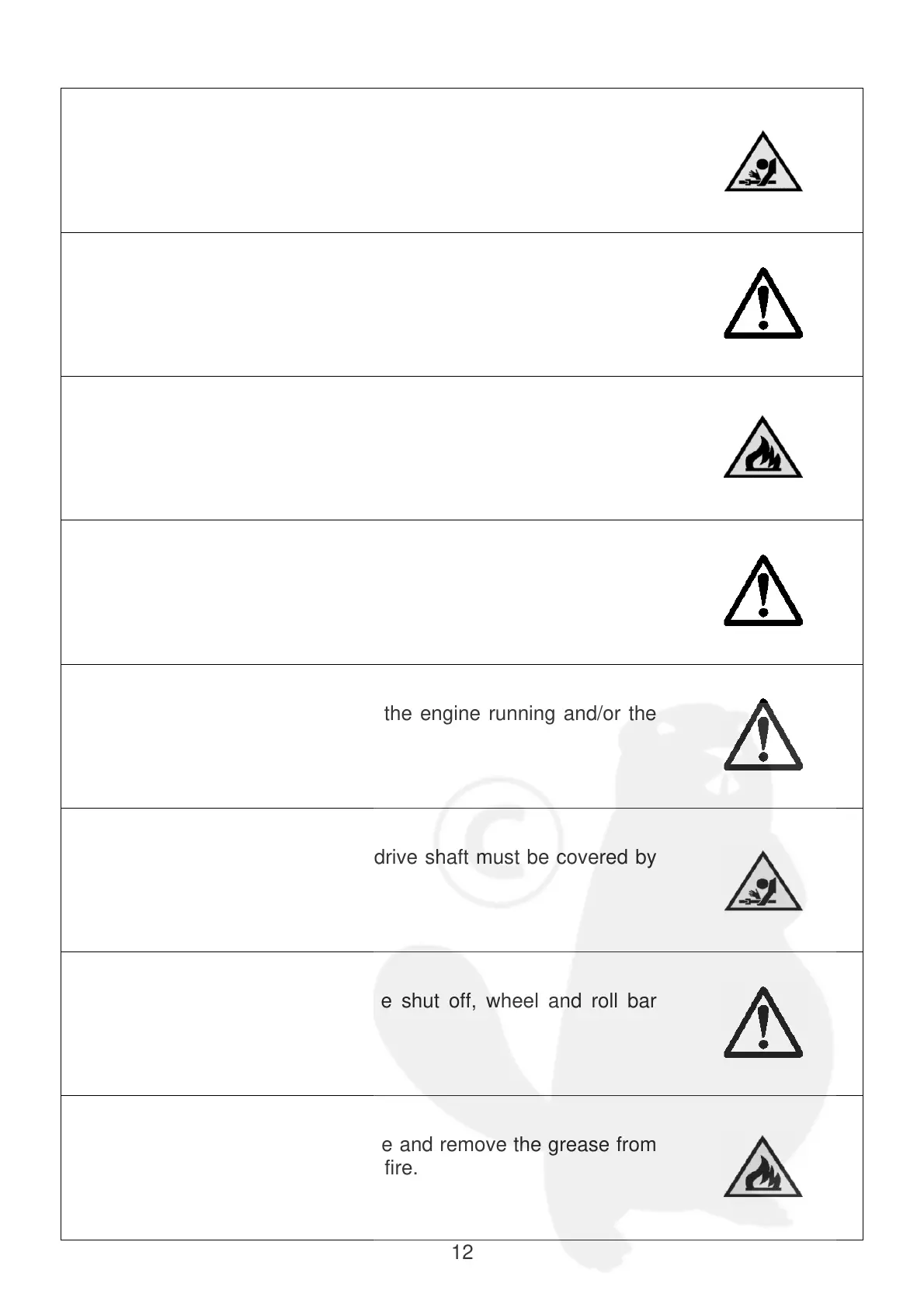 (PTO, Cardan couplings, pulleys etc) are fully guarded. Do not