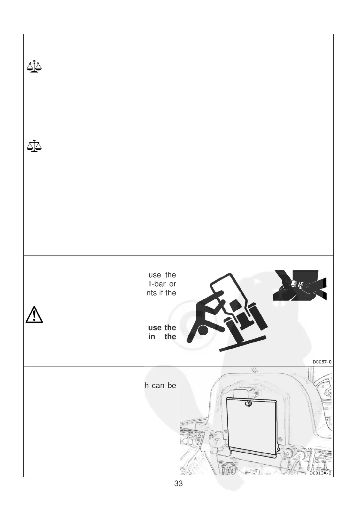 If the cab or roll bar are installed after the purchase of the tractor, the owner should refer