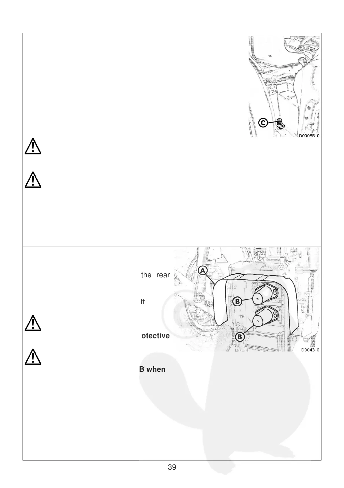 Cover the PTO shaft with guard B when