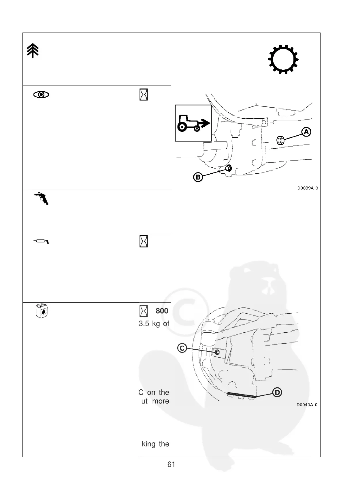• the front axle pivot pin (2 lubricators).