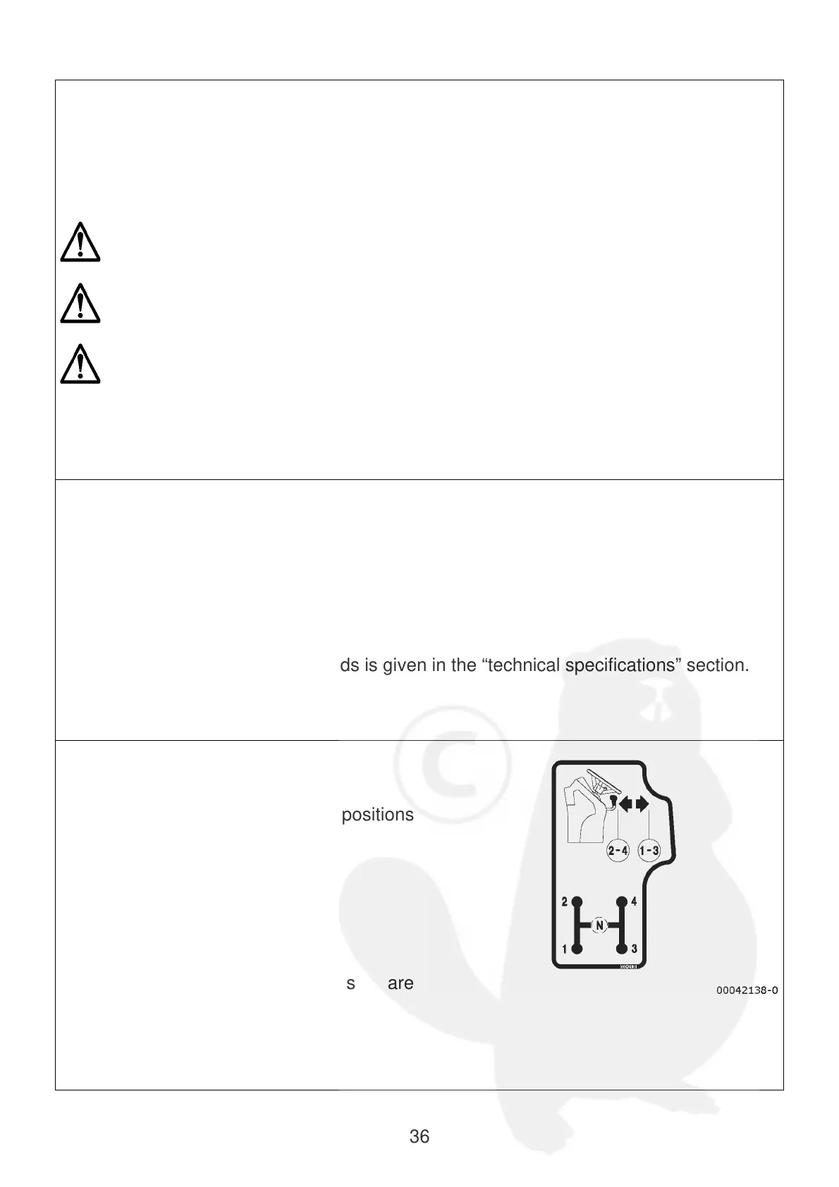 The machine’s transmission comprises a gearbox, final drive and synchronized reverse