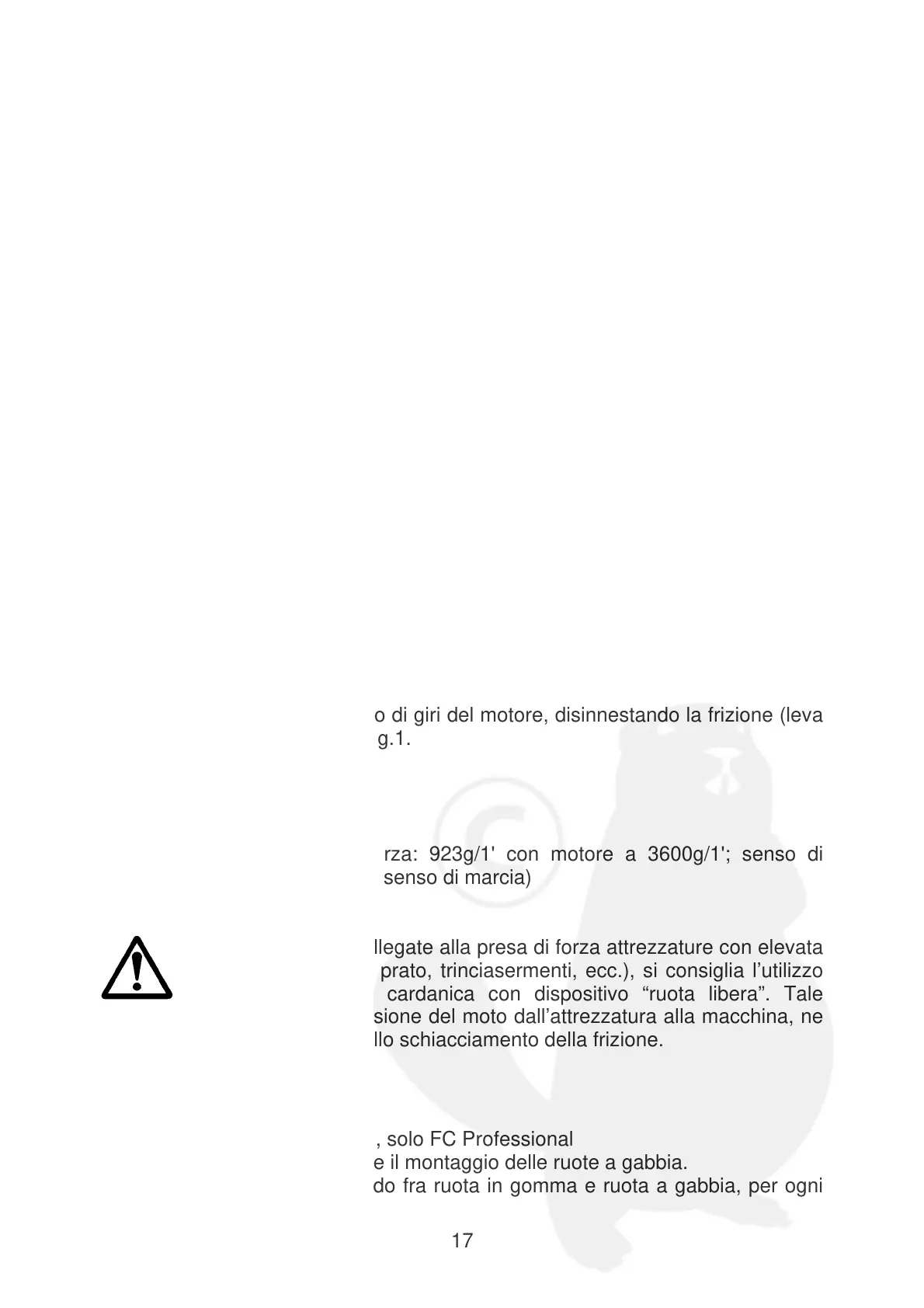 Numero giri della presa di forza: 923g/1' con motore a 3600g/1'; senso di
