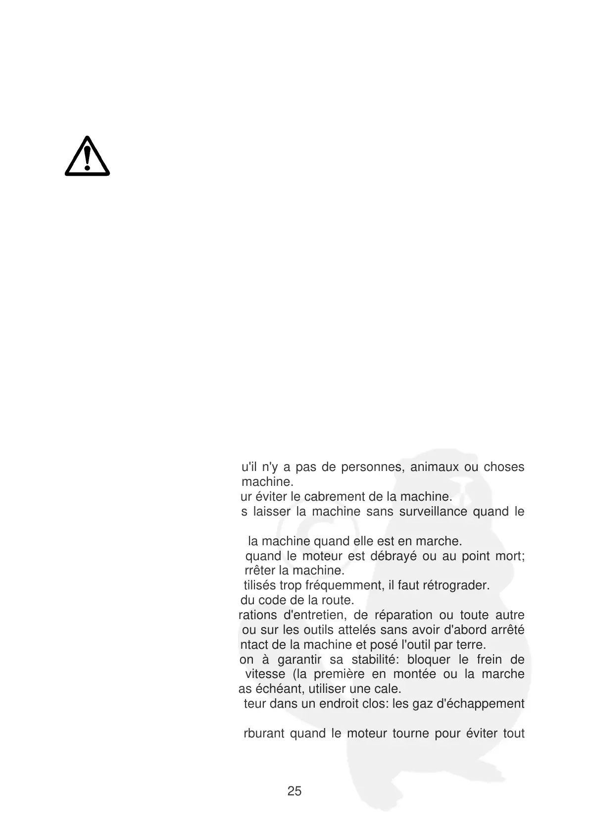 5. L'opérateur doit s'assurer qu'il n'y a pas de personnes, animaux ou choses