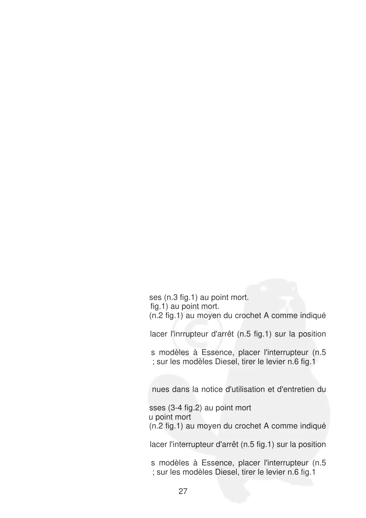 fig.1) sur la position OFF-STOP; sur les modèles Diesel, tirer le levier n.6 fig.1
