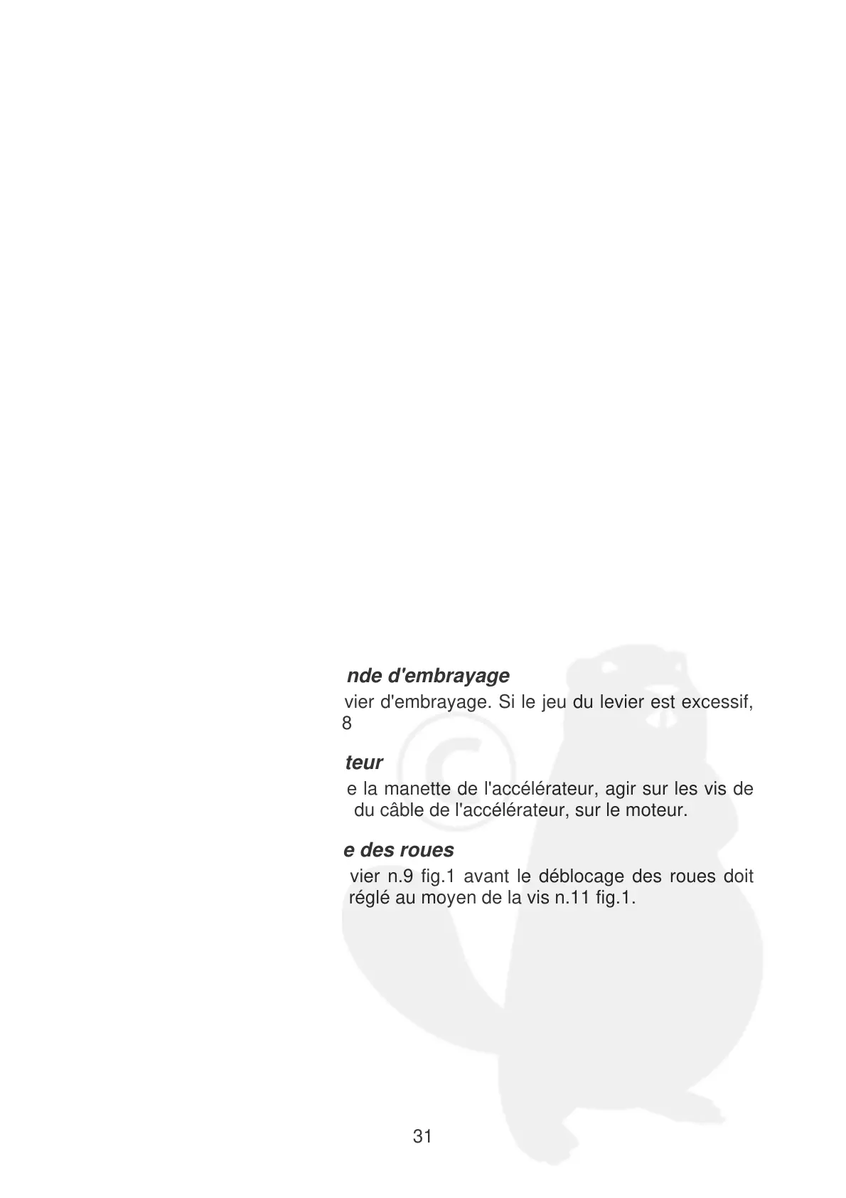 La course libre du câble du levier n.9 fig.1 avant le déblocage des roues doit