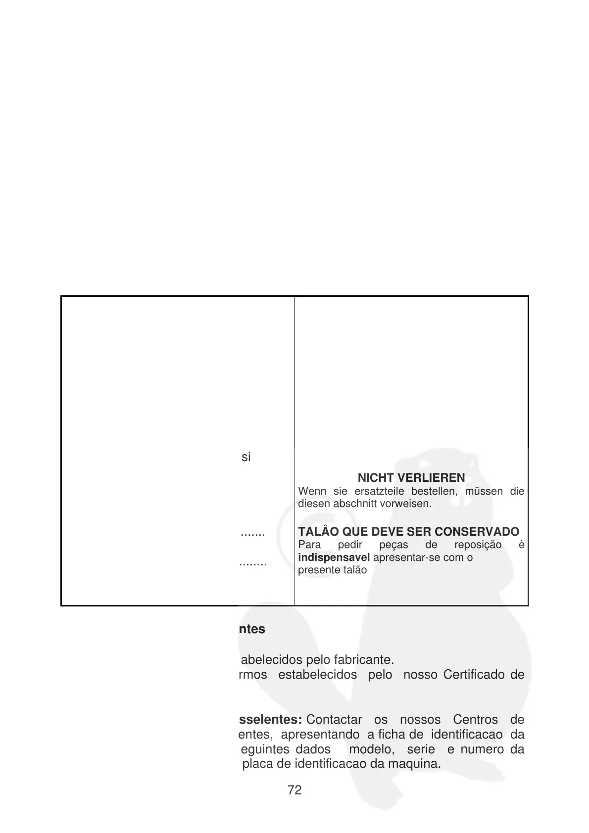 tempo a qualidade da máquina e dá direito à GARANTIA sobre o produto no