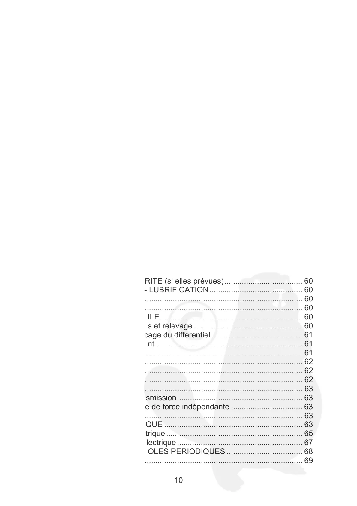 6.3.3 Huile des freins et blocage du différentiel .......................................... 61