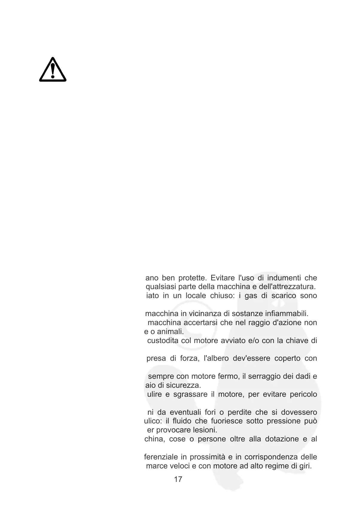 cardanici, pulegge, ecc.) siano ben protette. Evitare l'uso di indumenti che
