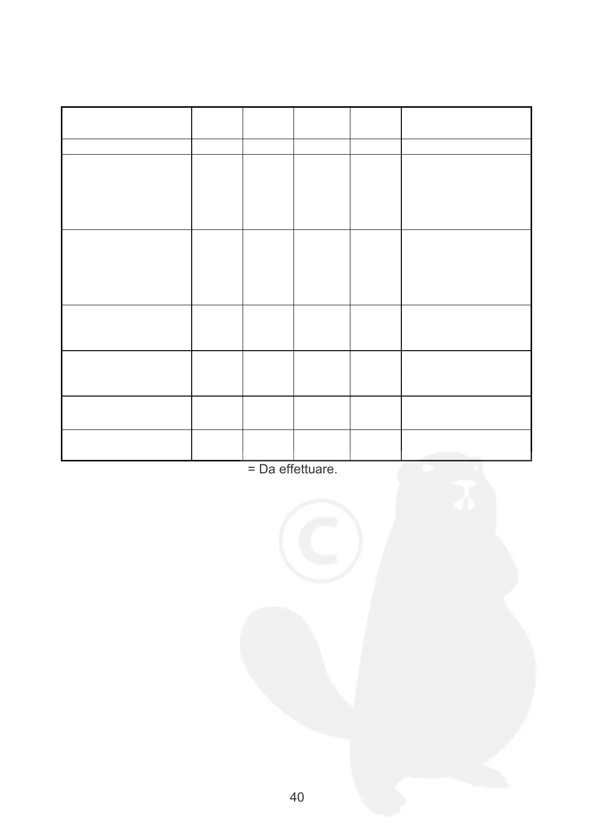 V = Verificare, S = Sostituire, X = Da effettuare.