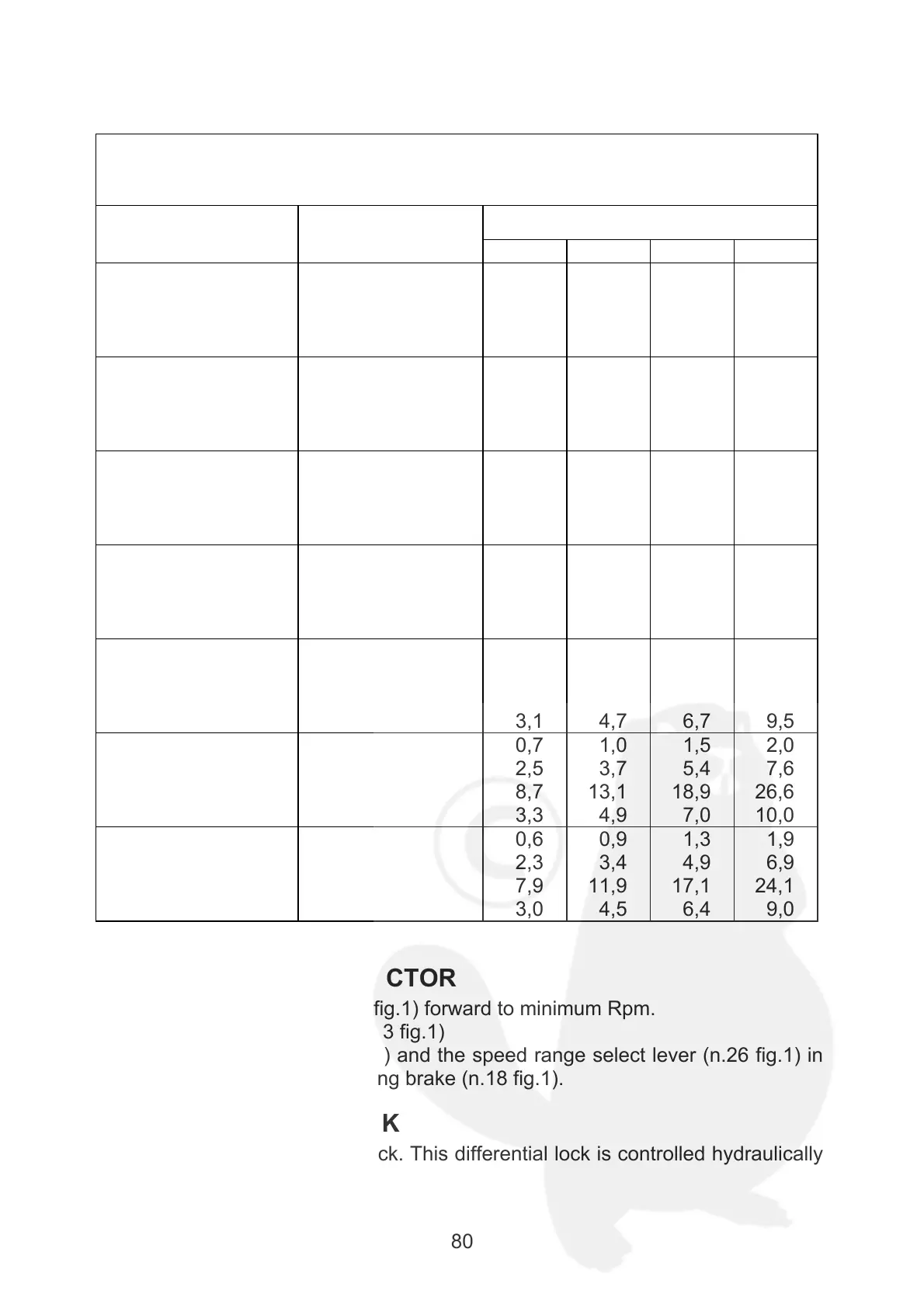 c) Put the gear lever (n.2 fig.1) and the speed range select lever (n.26 fig.1) in