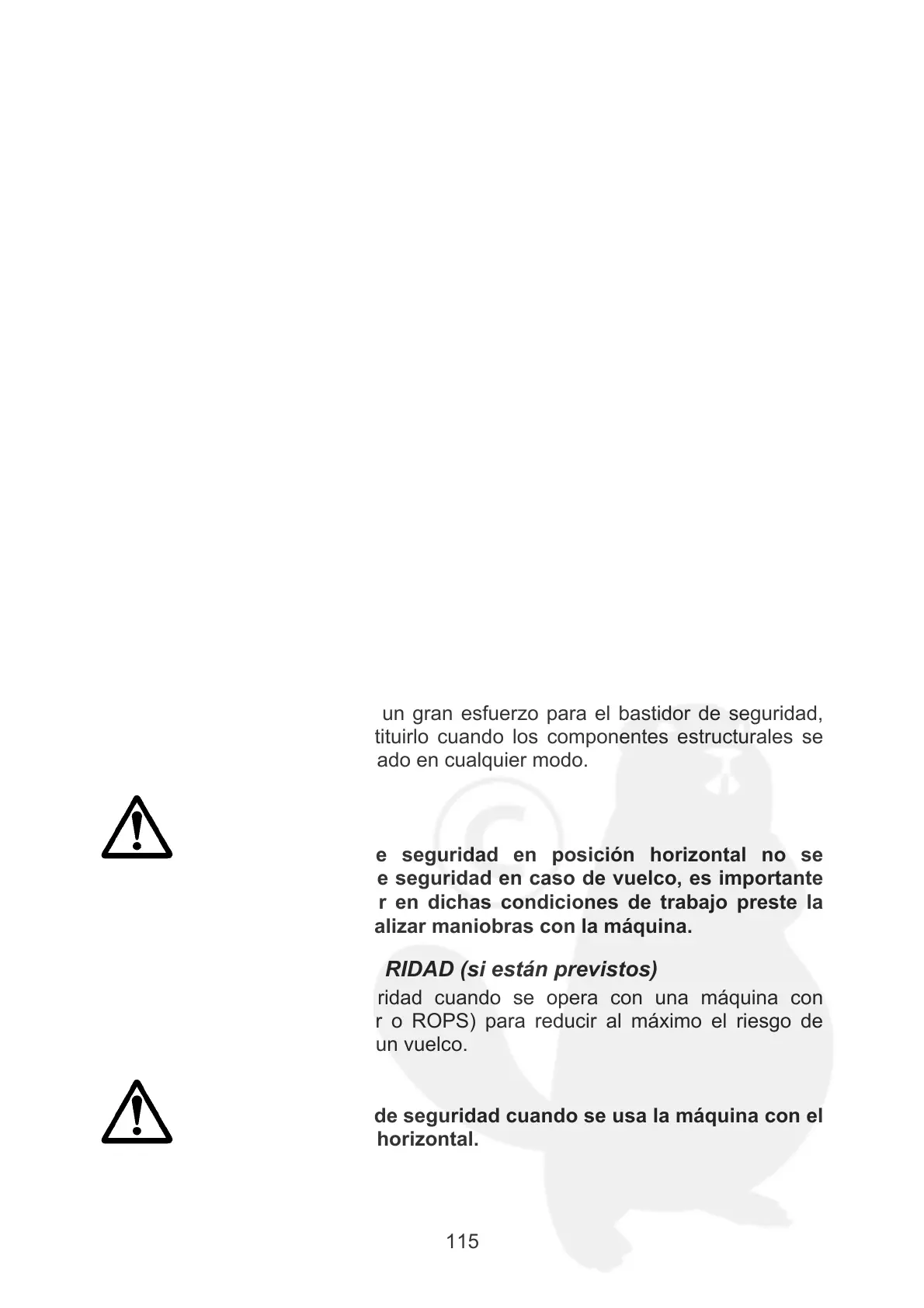 mantener siempre el bastidor de seguridad montado en su correcta posición