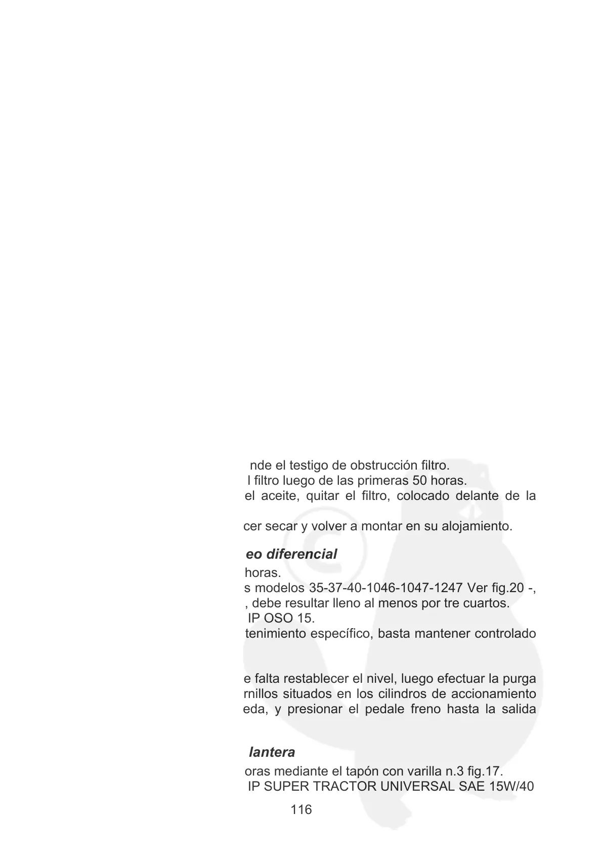 Se aconseja de usar aceite AGIP SUPER TRACTOR UNIVERSAL SAE 15W/40