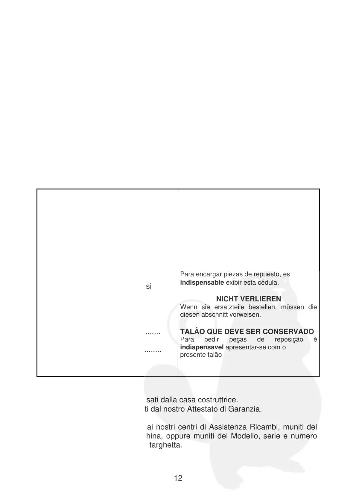 Garanzia e ricambi