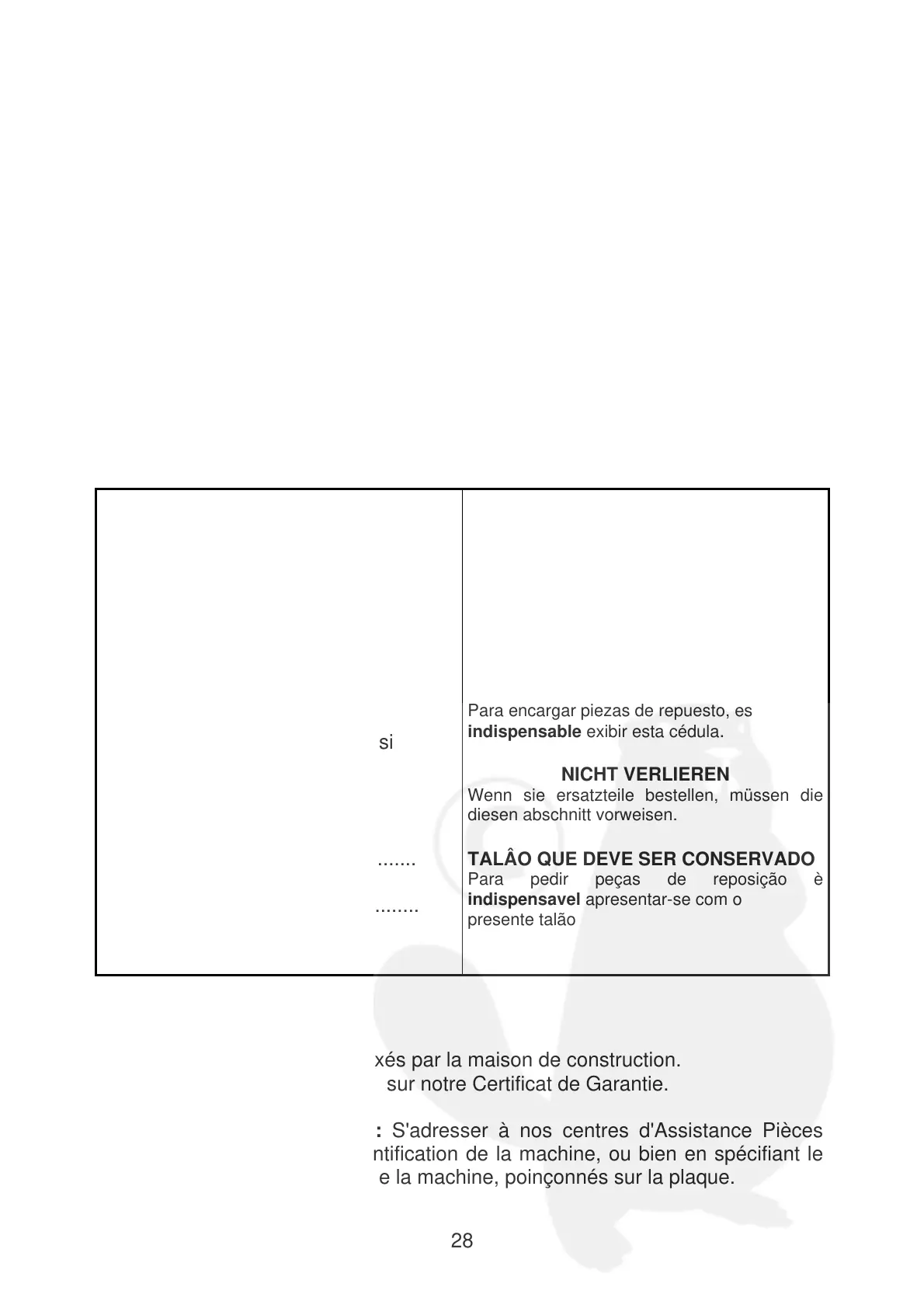 indispensable pour la demande des pièces détachées auprès de nos centres