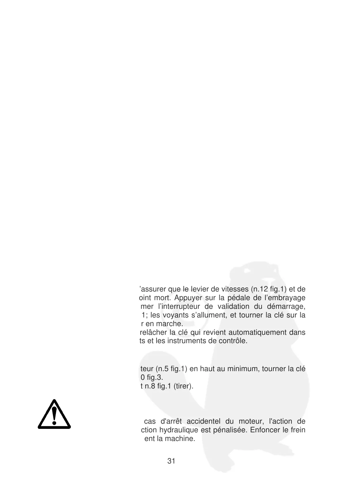 Avant de démarrer le moteur s’assurer que le levier de vitesses (n.12 fig.1) et de