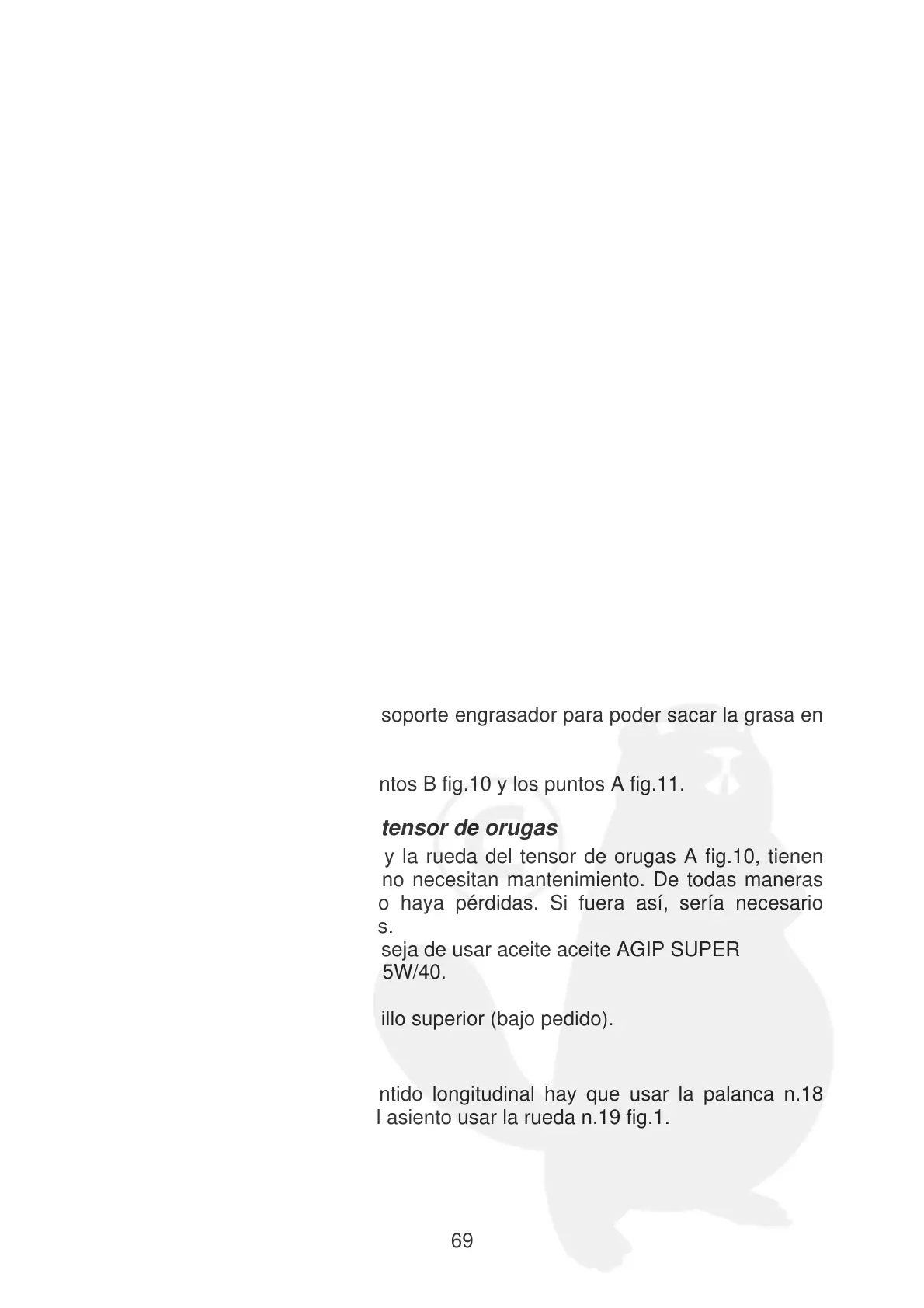 Para cambiar la tensión de la oruga, quitar el tapón F fig.10 y, con la bomba de