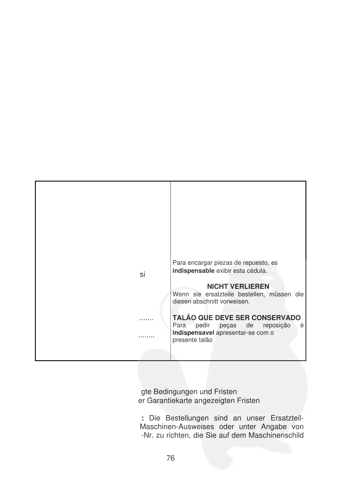Maschine: innerhalb der auf der Garantiekarte angezeigten Fristen