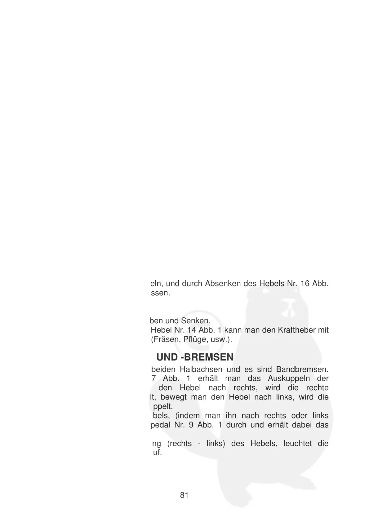 bewegt), tritt man das Bremspedal Nr. 9 Abb. 1 durch und erhält dabei das