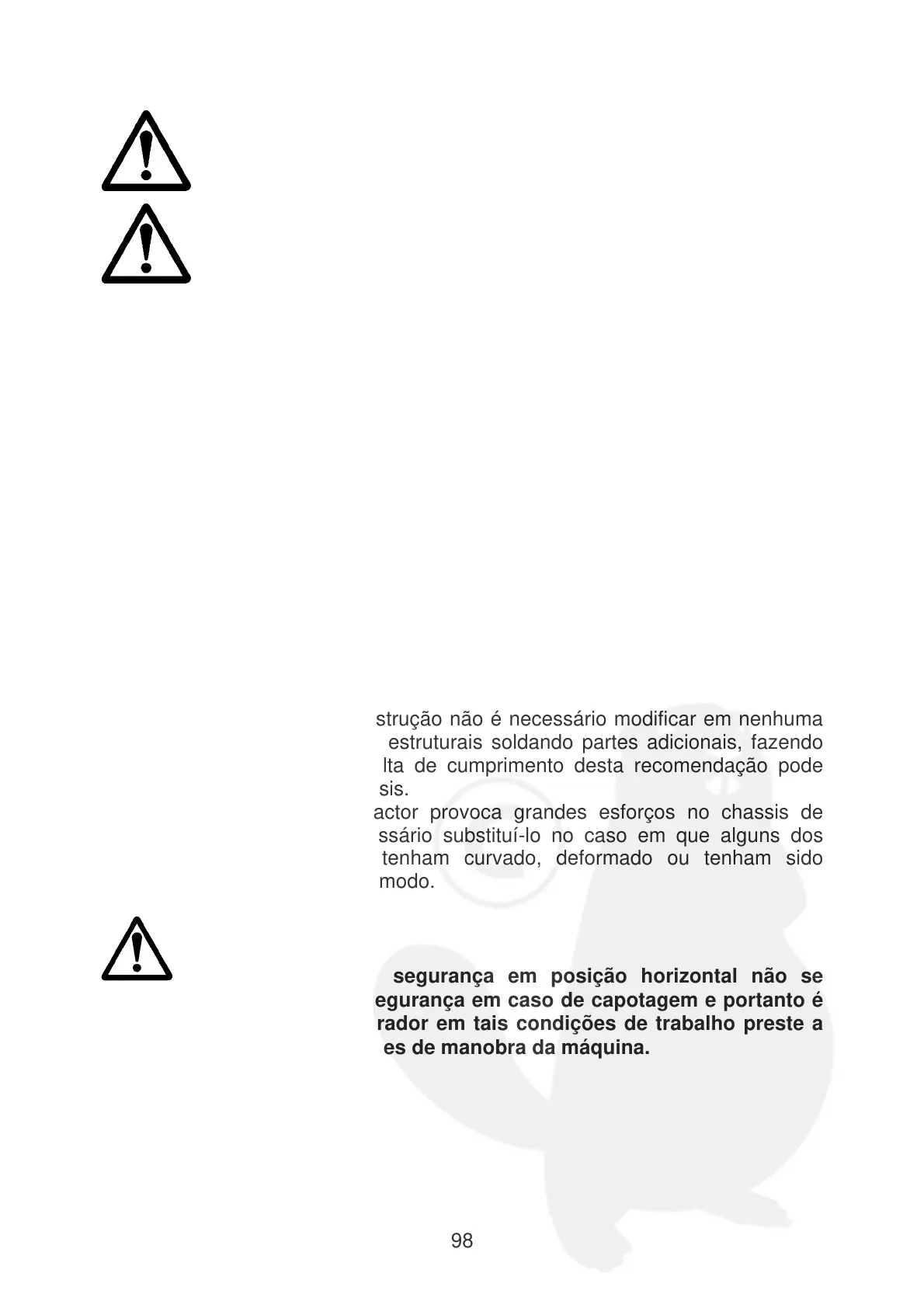 máxima atenção nas operações de manobra da máquina.