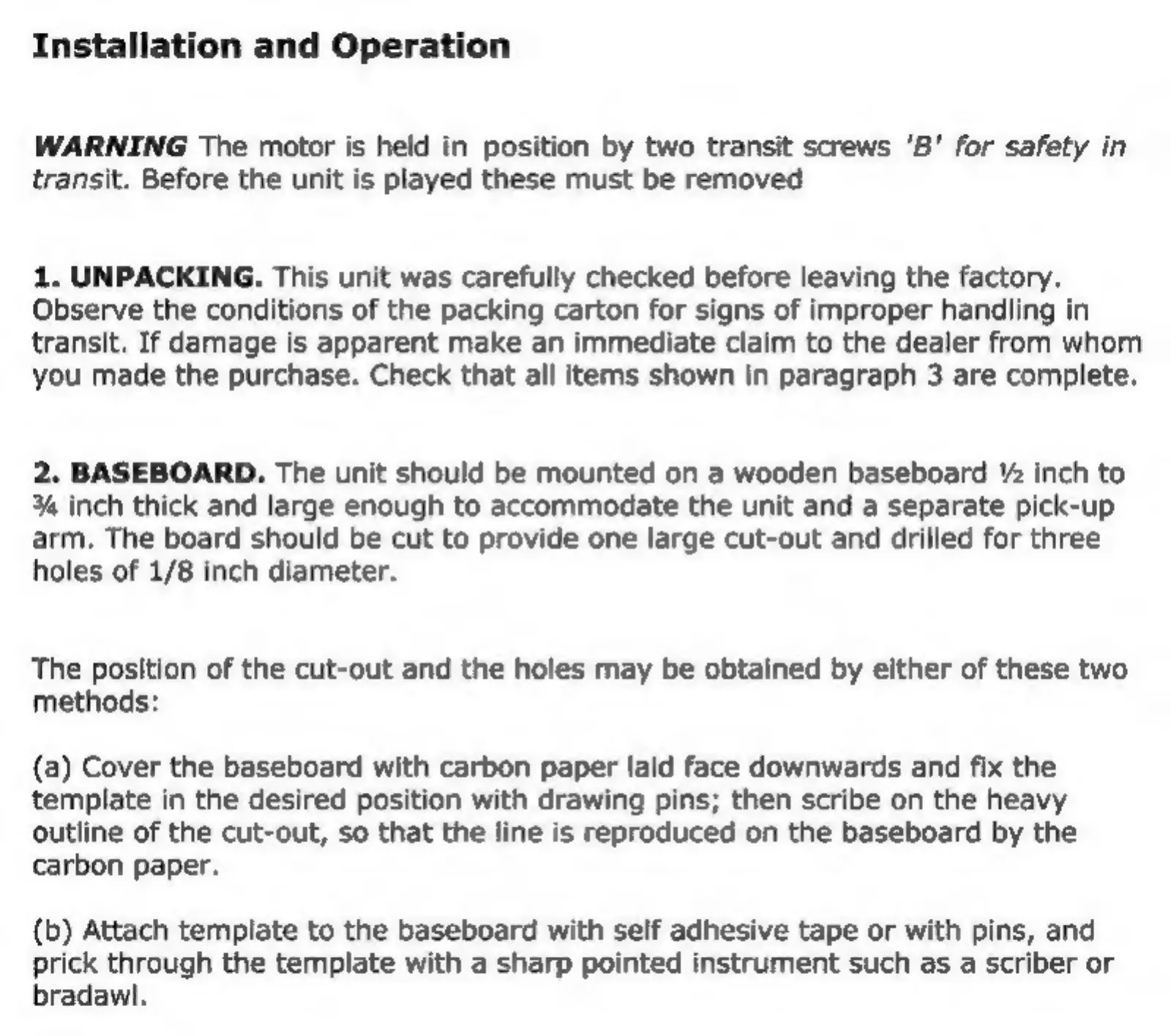 Goldring G99 - Installation and Operation Guide; Unpacking Procedure; Baseboard Mounting