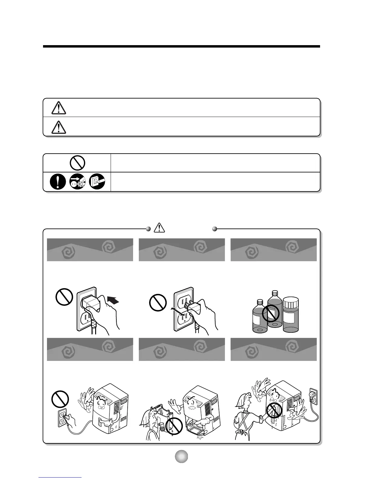 ■ To prevent injury to the user or other people and property damage, the following instructions must be followed.