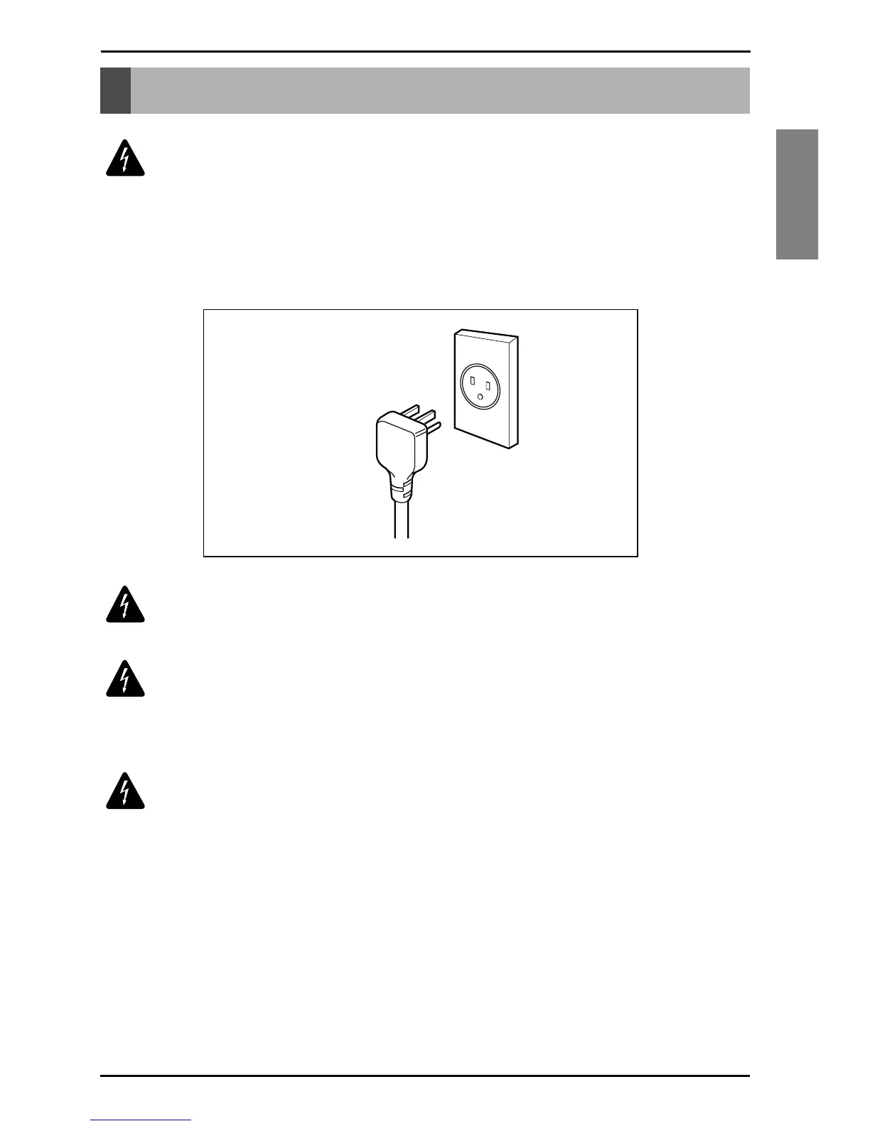 To minimize the risk of electric shock, use the plug with a standard three-slot
