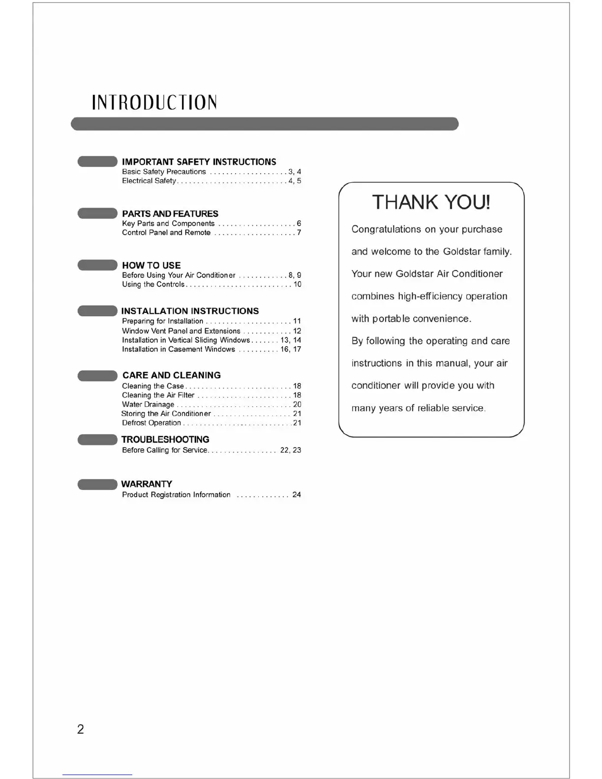 Goldstar GP120CE - Table of Contents