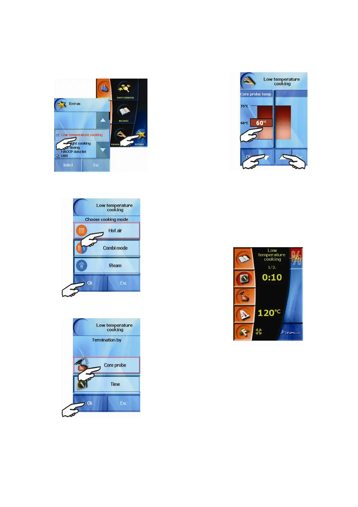 a) Choose „Low temperature cooking“ in the „EXTRAS“ menu