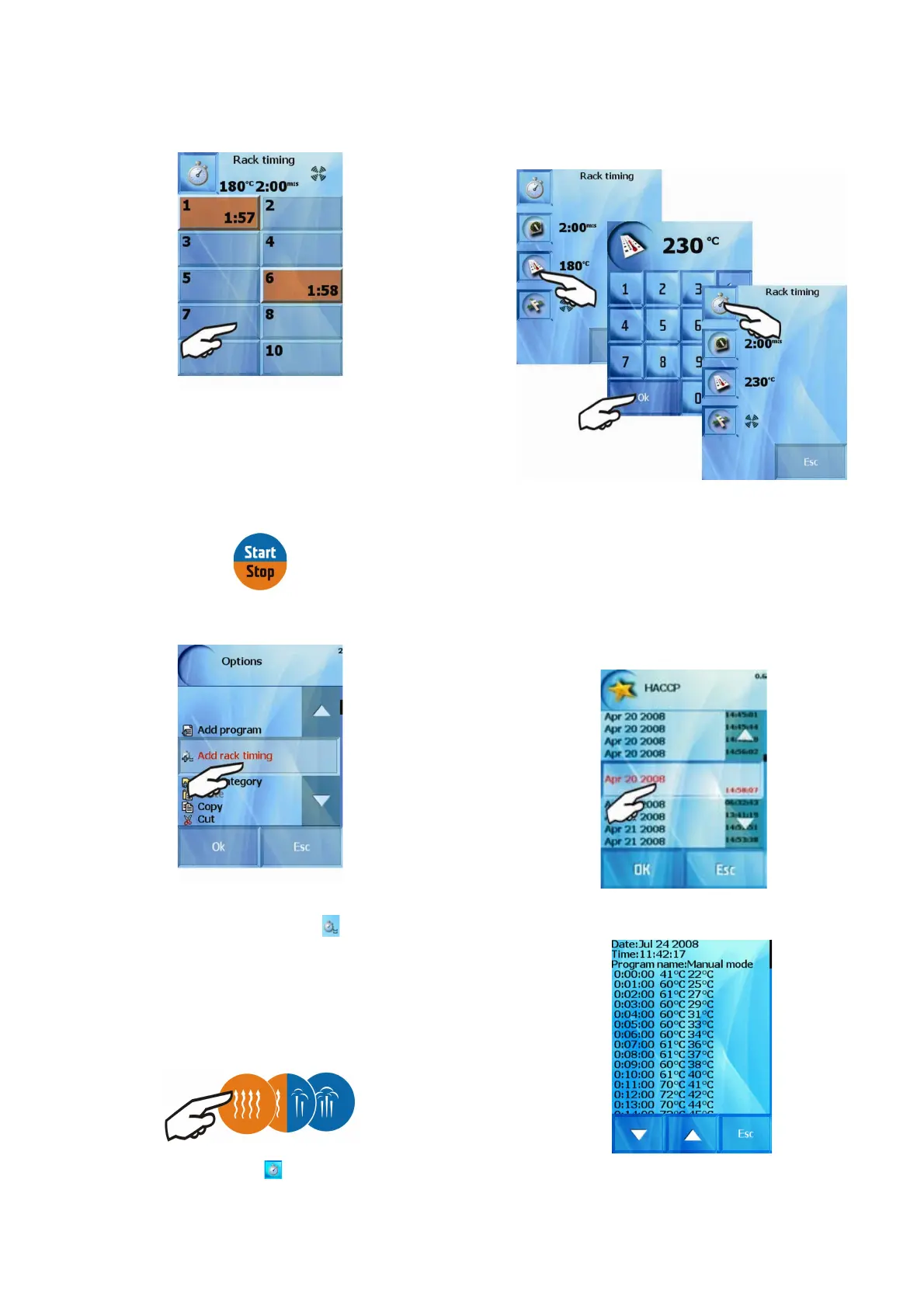 mode/Programs/Easy cooking, the values of time, temperature, core