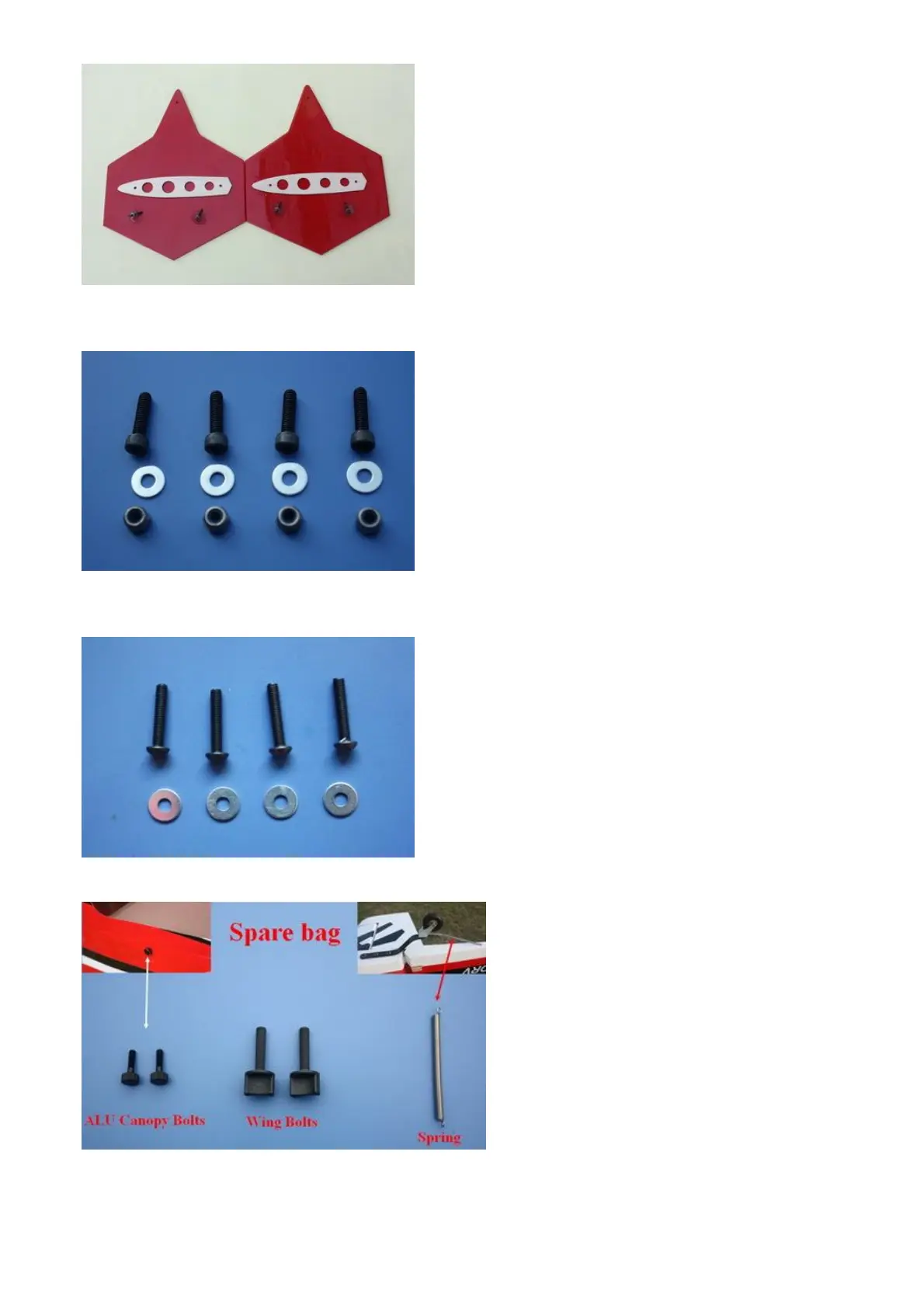 Spares bag(Two spare aluminum hand-twist bolts \Two spare wing bolts\One spare tail wheel spring)