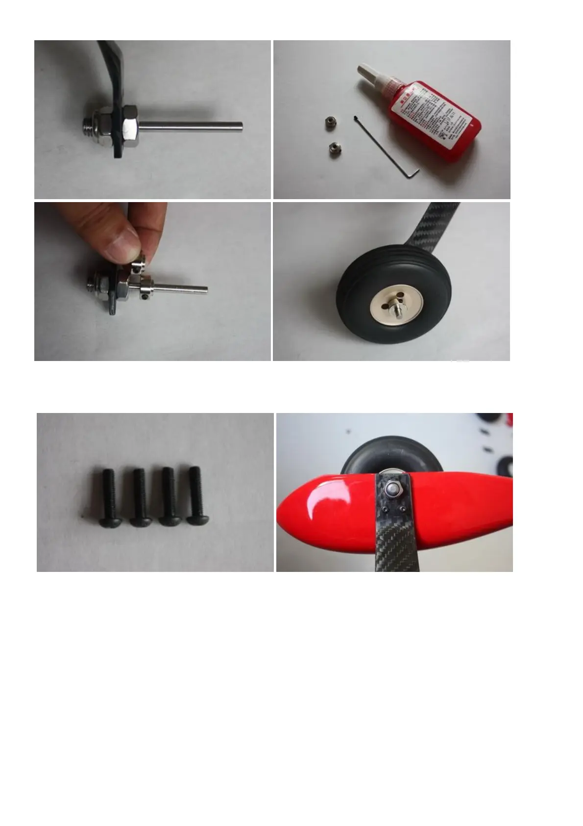 the tailwheel in place. Use loctite on the bolts. Then install the spring, using the self-tapping screw to attach