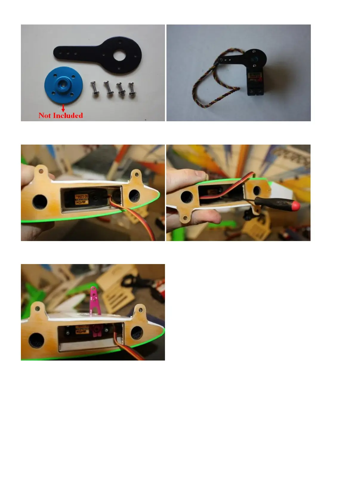 6. Place the servo into the elevator and screw in place. Remember to harden the holes with thin Cyano.