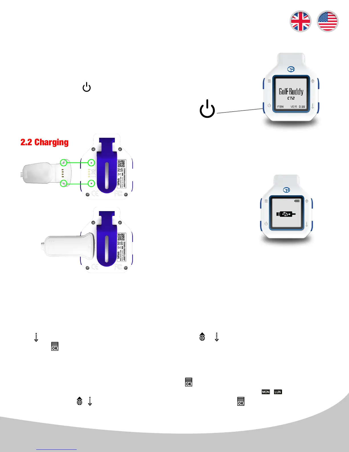 Press and hold the button for 3 seconds to power the CT2 ON/OFF