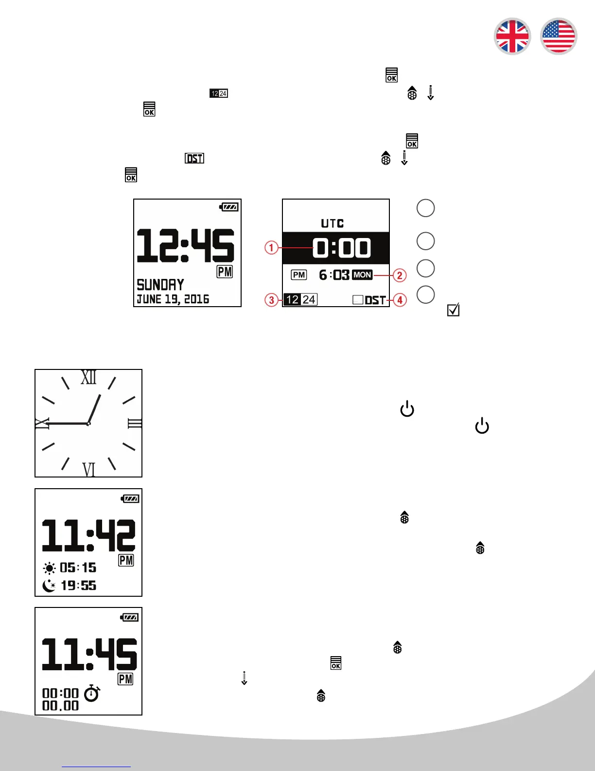 Daylight Savings Time: After entering the time setting mode, press the button three times to edit