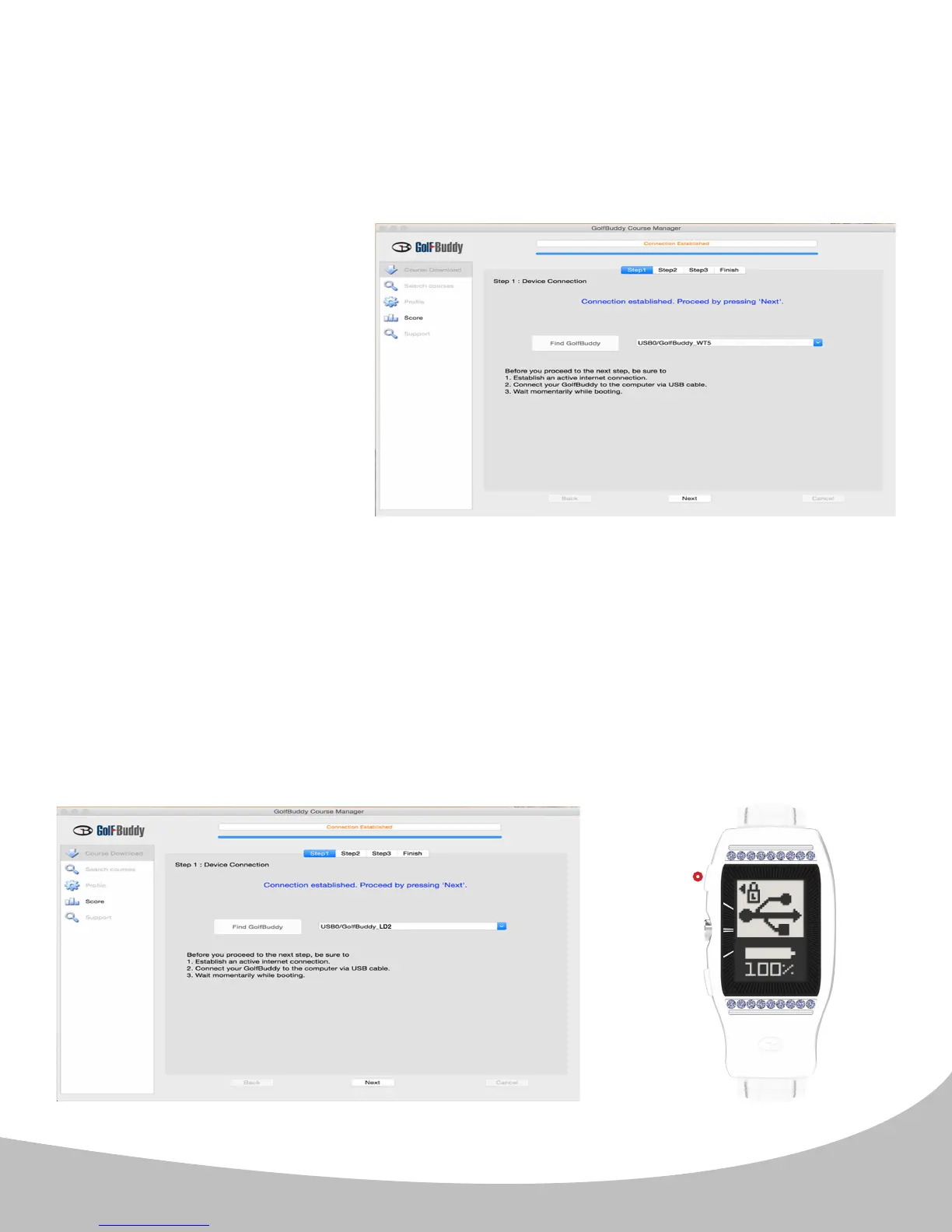 • Connect your GolfBuddy unit to a USB port on your computer using the USB cable