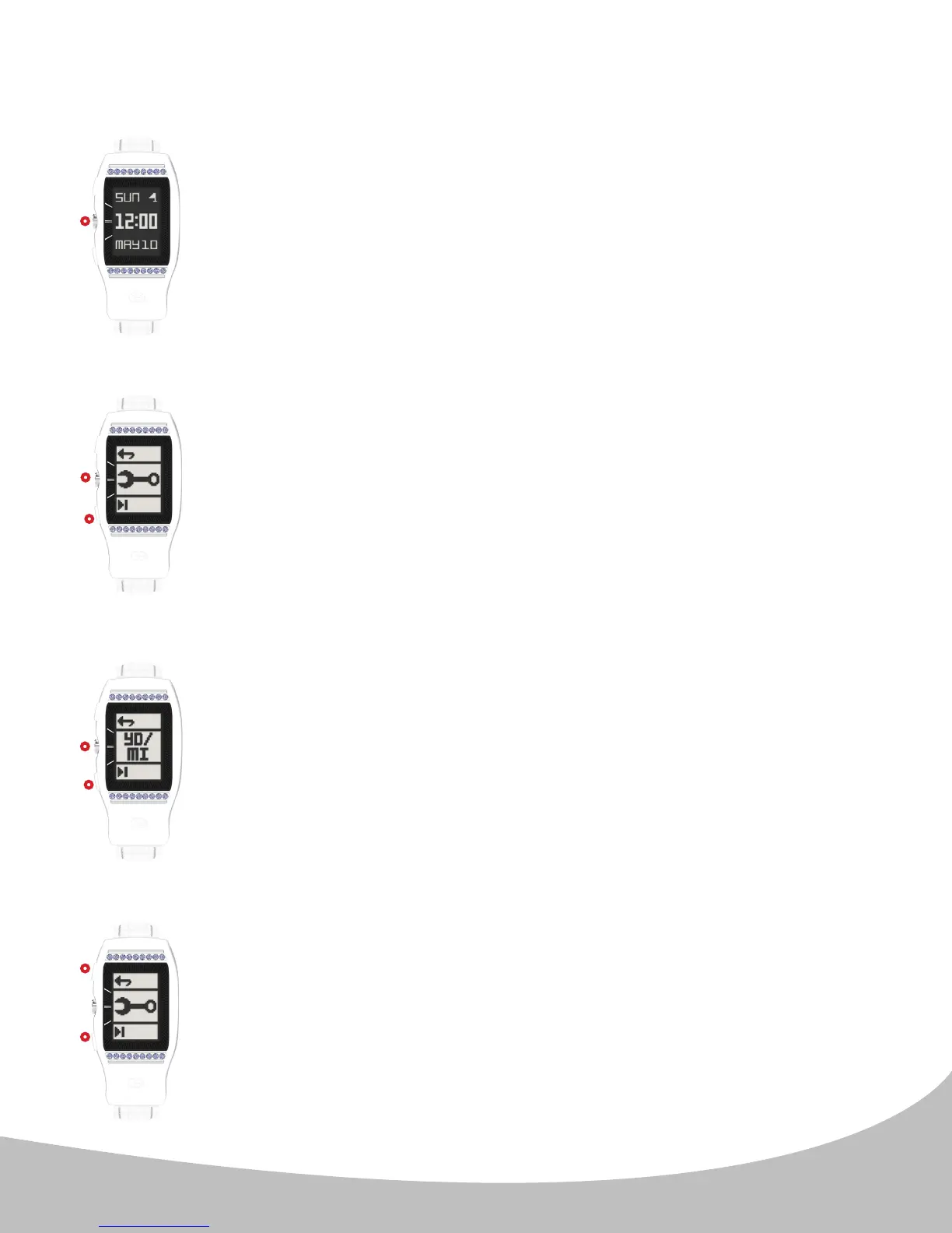 el botón central ( II. ). Esto hará que vuelva a la pantalla de inicio (hora).