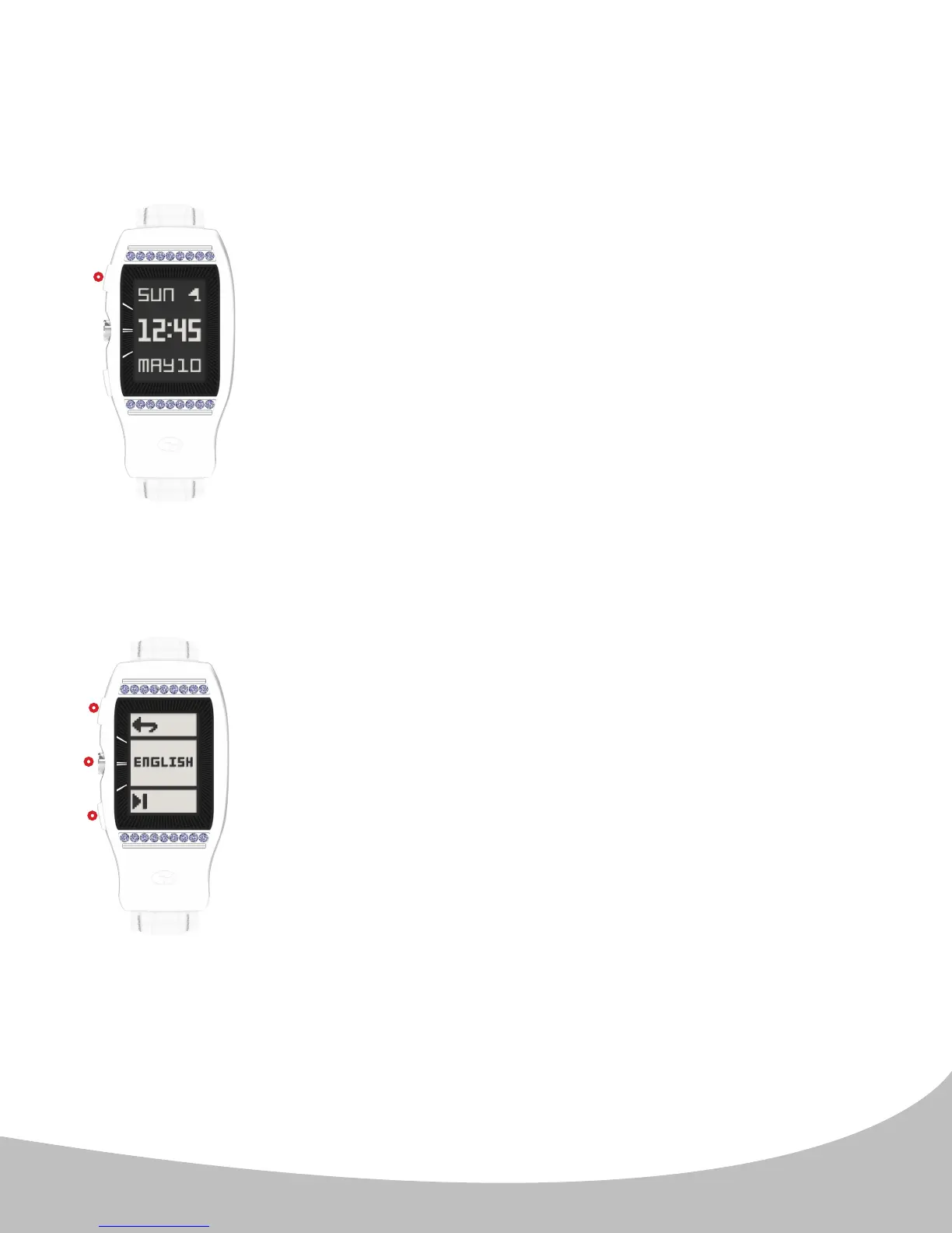Note: The language setting only aects the Day and Month on the Home (Time) screen