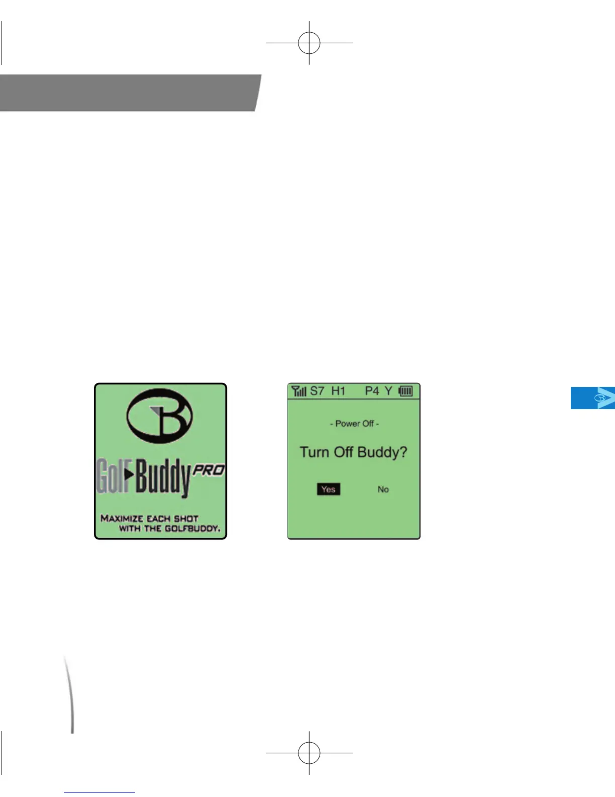 GolfBuddy powers on. Once the GolfBuddy is powered on, the