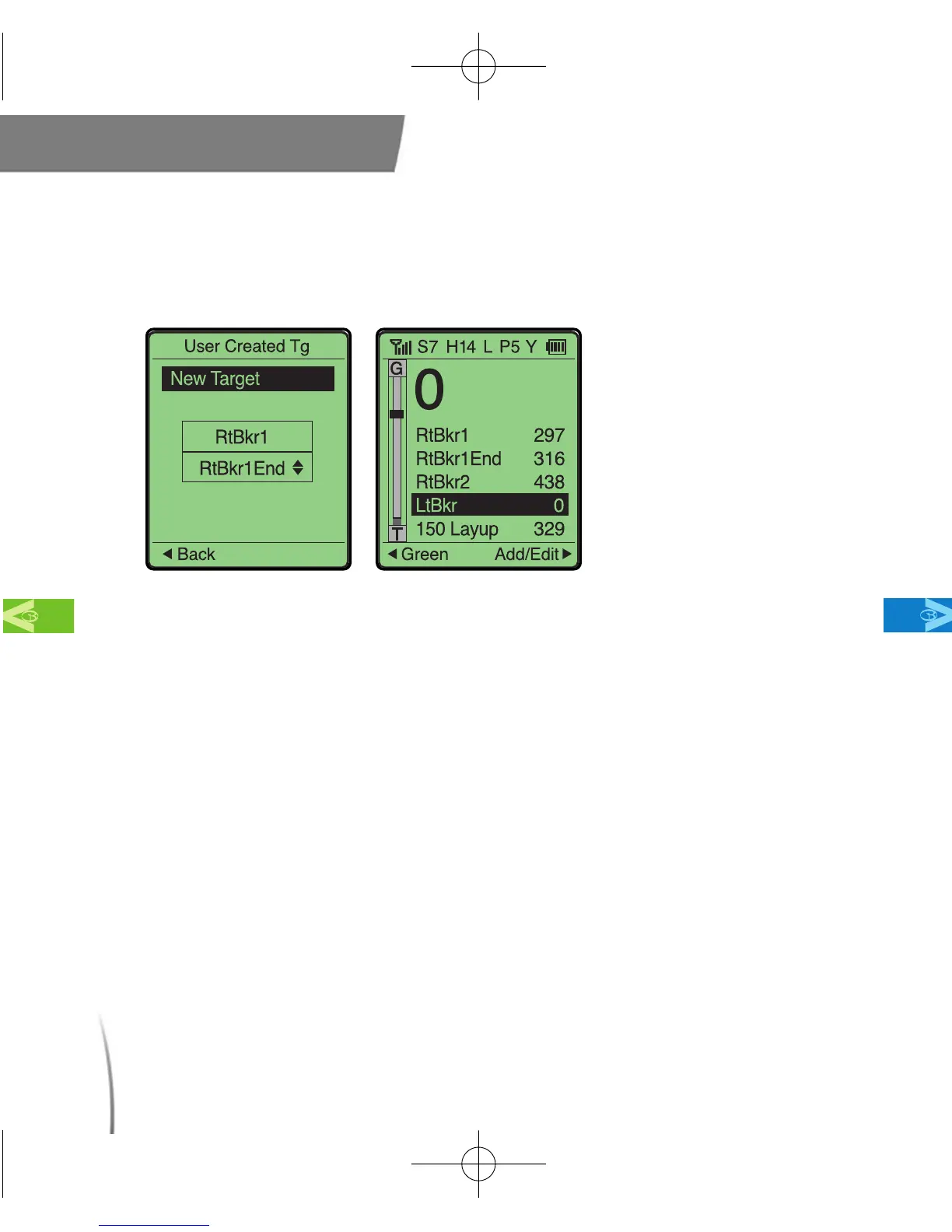 the right side of the GolfBuddy. The screen will then display “Mark