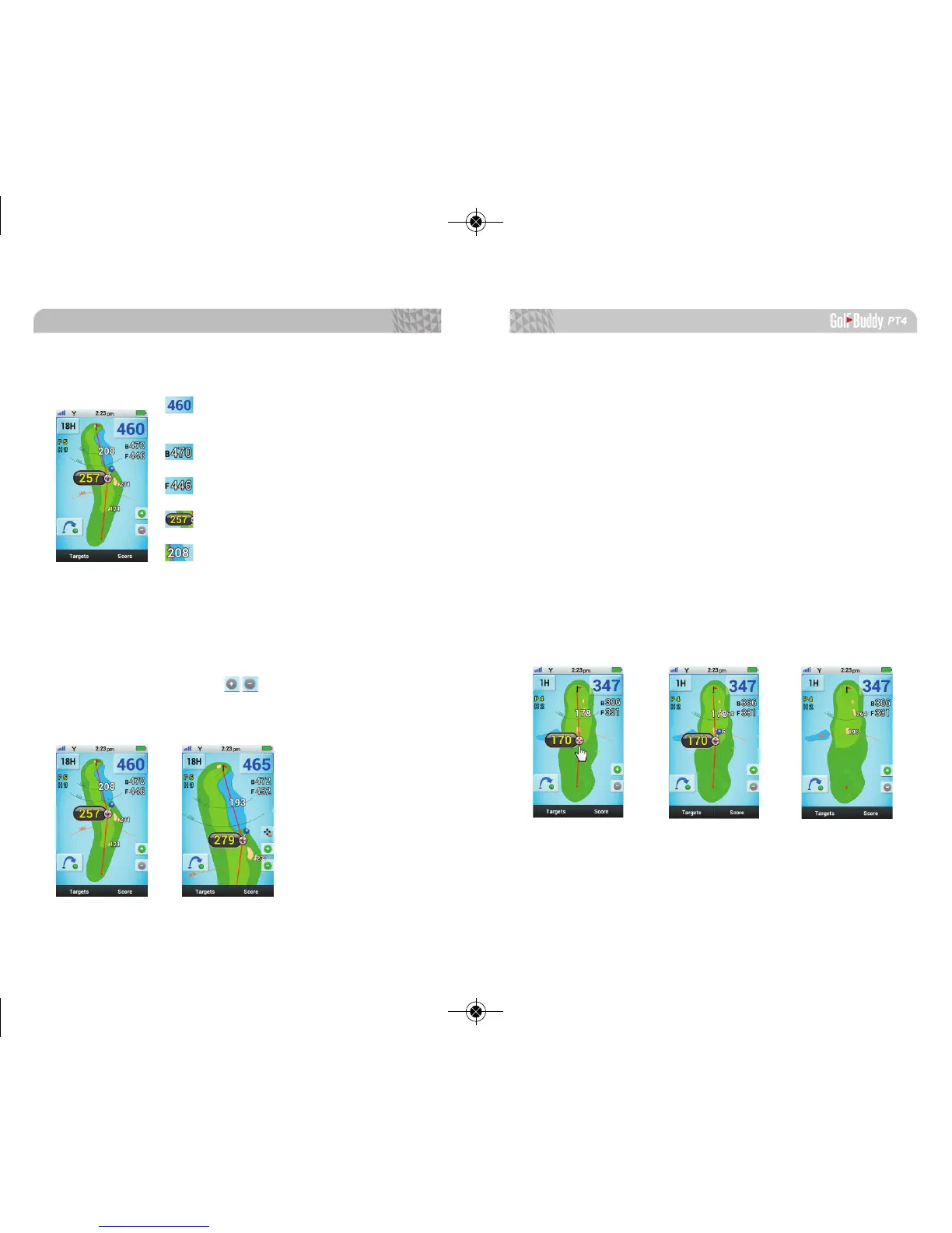 The GolfBuddy PT4 will automatically display dis-
