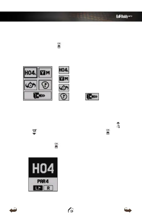 화면이 나타나며, 홀변경, Yard/Meter 변경, 핀위치