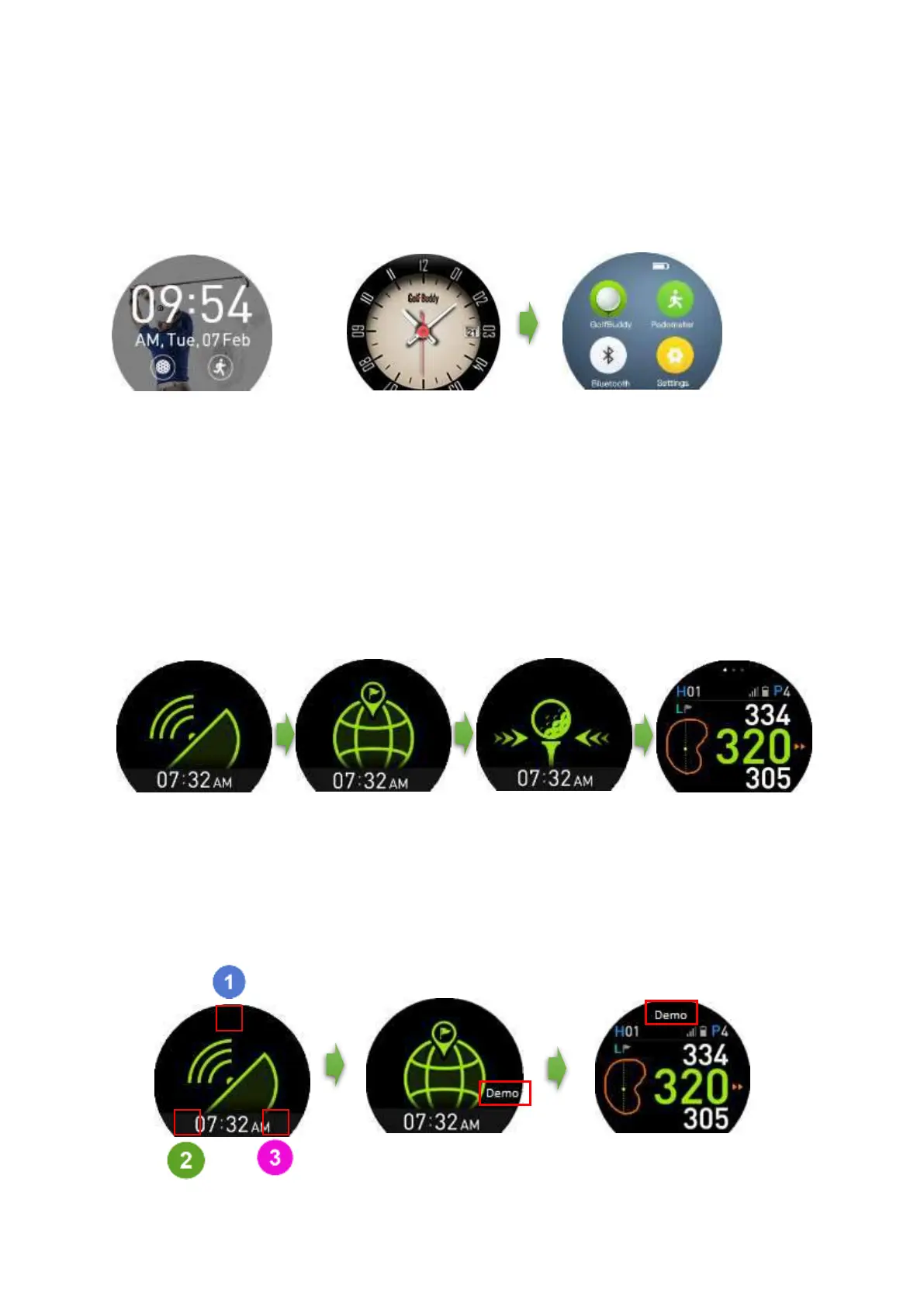 To view GOLF mode while away from the golf course, you can put the WTX into “Demo mode”. To