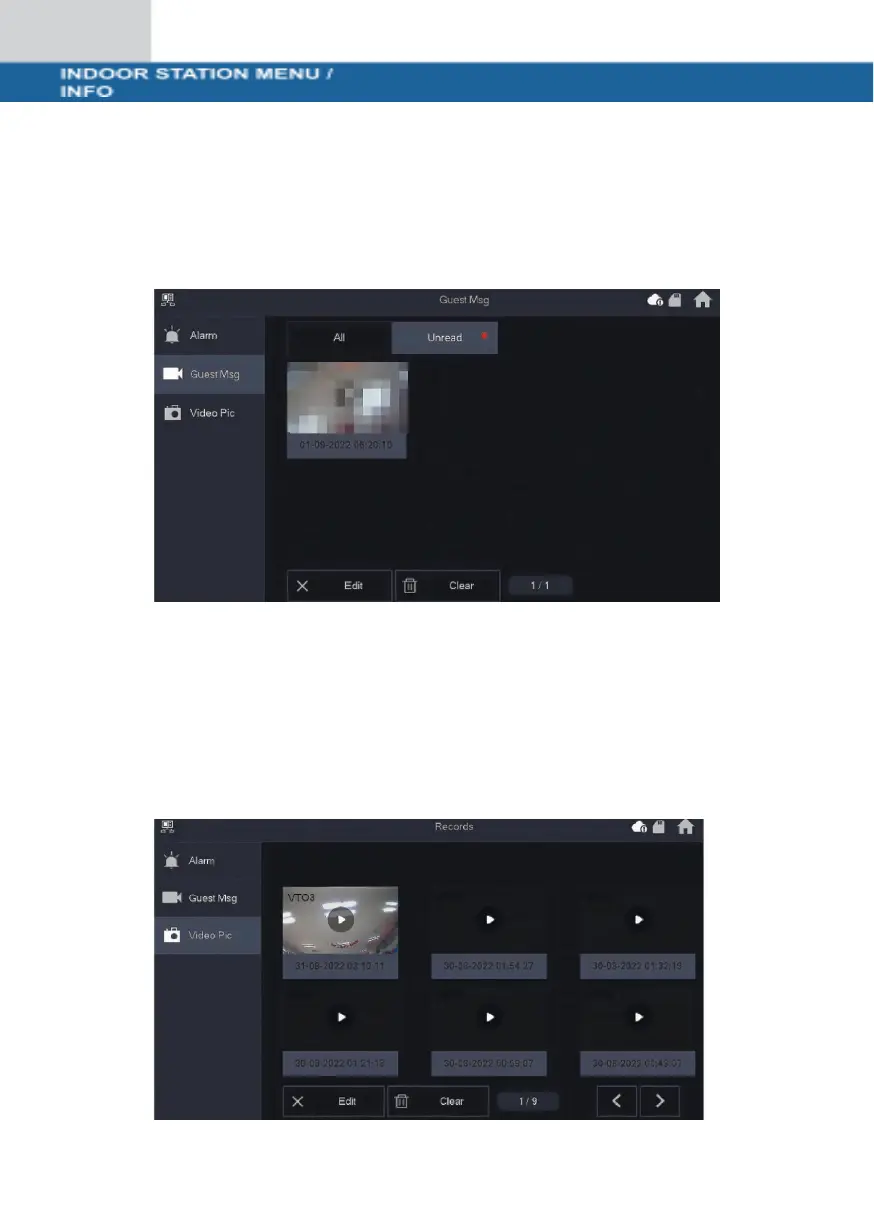 This tab only appears if you have inserted an SD card in the indoor station. If an