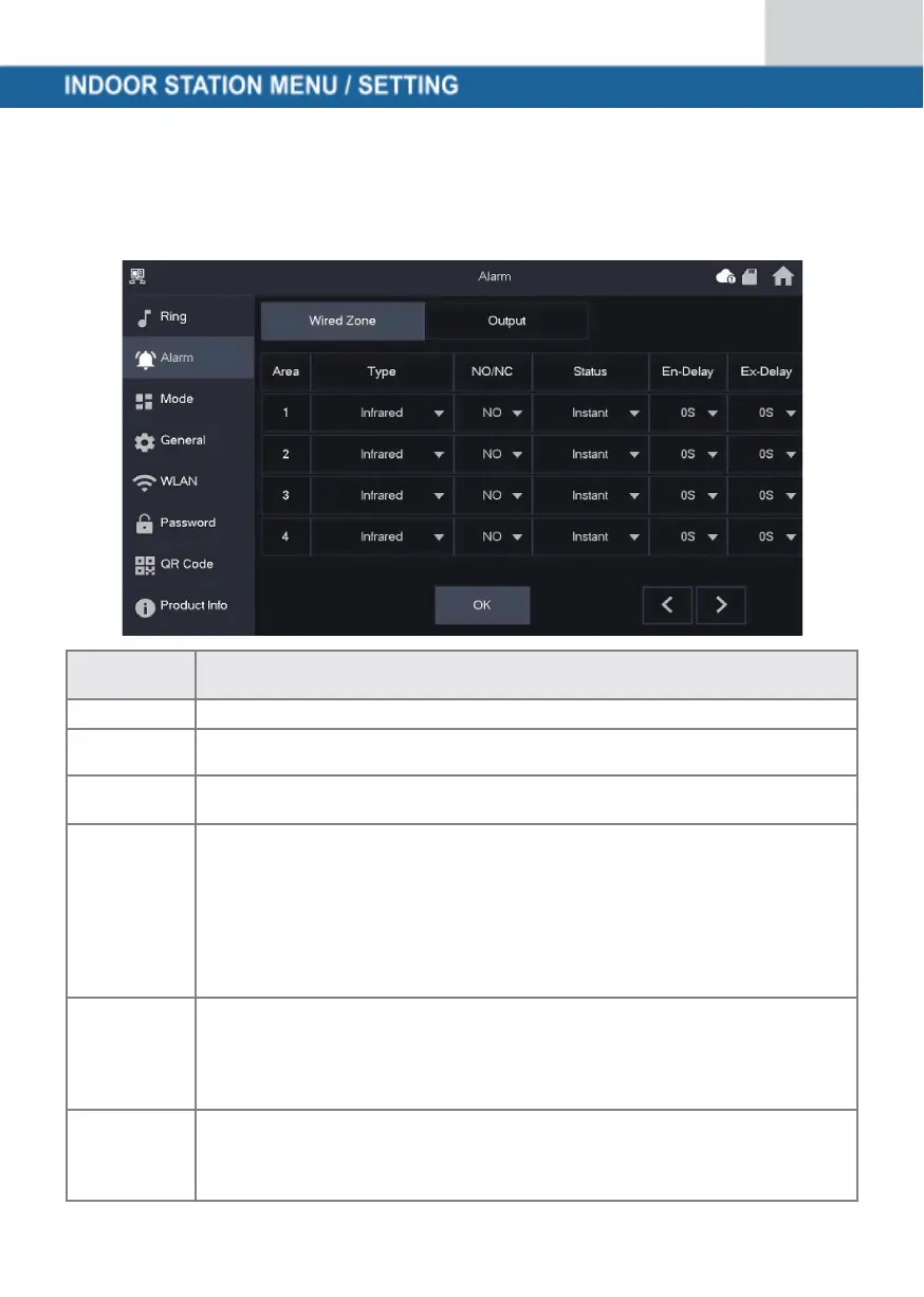 You can set the detector type, NO/NC, the alarm status and the input and output delay