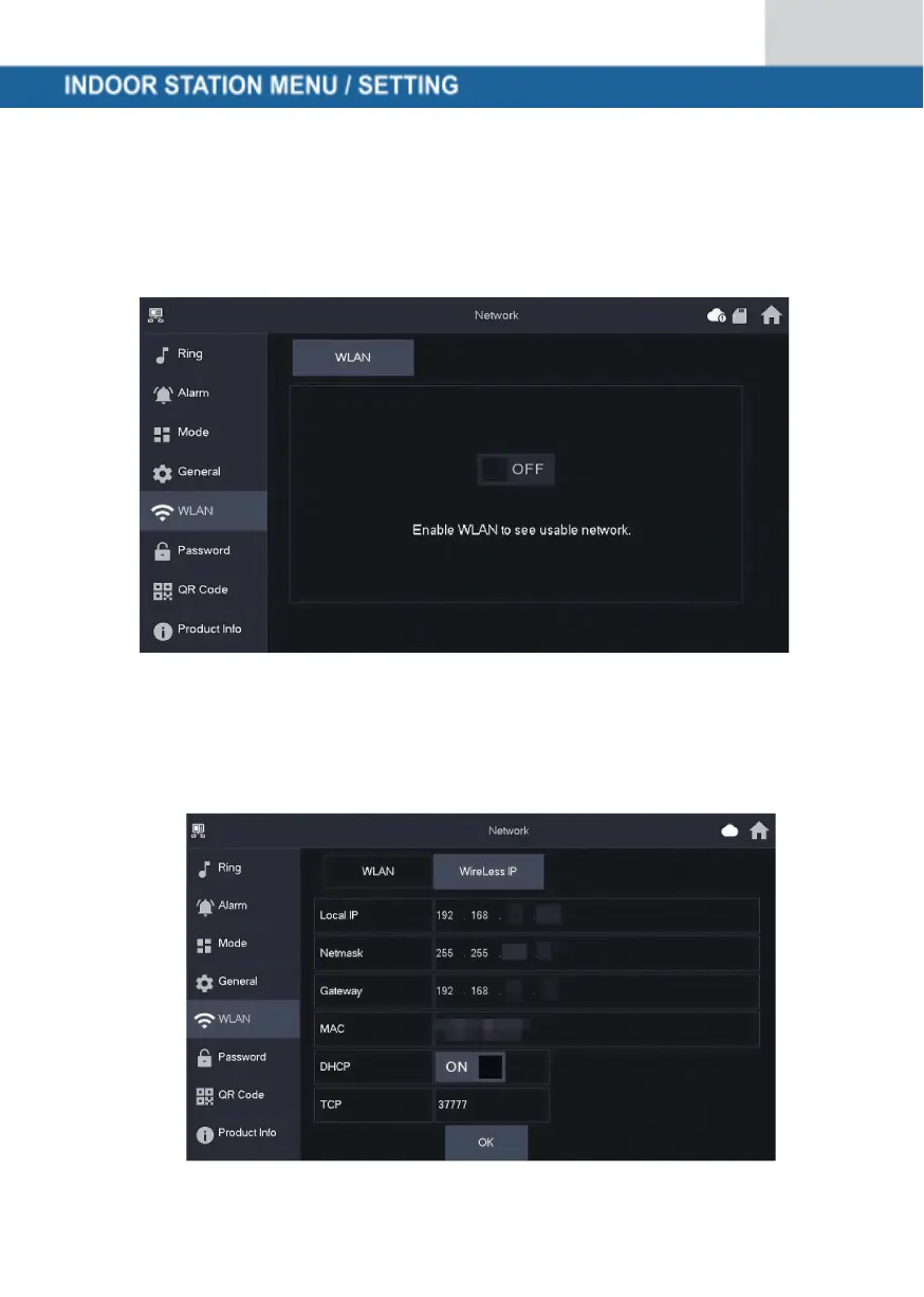 Once the WLAN has been switched on and connected, you can specify an IP